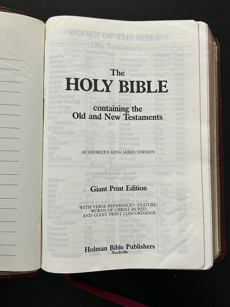 Holy Bible KJV Giant Print Reference Edition Holman Leather Bound 1980s 8.5" x 6" x 1.5", 1918 pages + additional Bible Reading Helps and Index Writing in Belongs to Section, No other flaws. Smoke Free Home