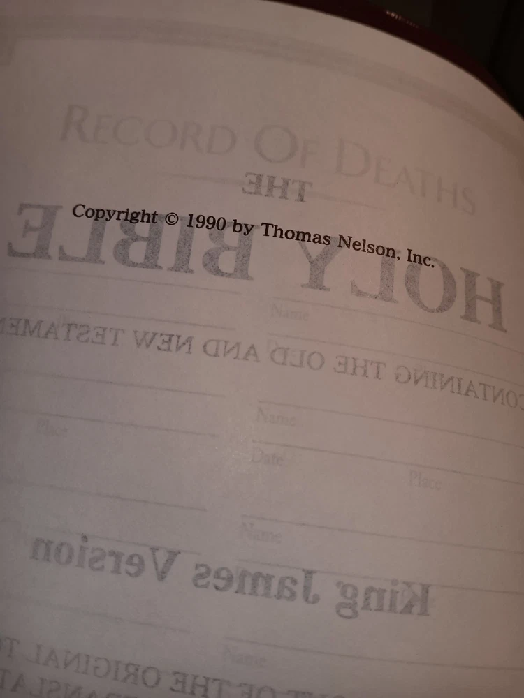 The Bible is in excellent shape; it is clearly brand new. As the photo showed, there is a small indentation on the back of it, but I knew that before I ordered. It was very well packaged for mailing; thank you so much!