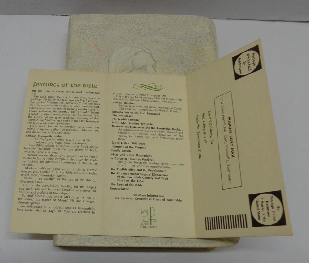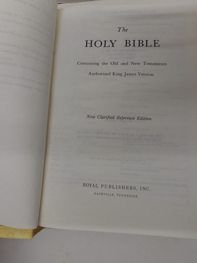 Holy Bible, KJV, Gold Seal Remembrance Edition White Leather, box Royal Publishing, New Clarified Reference Edition. If you want to combine shipping, add everything to your cart before paying. If you pay separately, you will need to notify me before I purchase shipping. I will accept returns on this item as shown in the listing. I do not cover the return shipping costs unless there is a defect in the product, an error in the listing, or damage in shipping. I cannot accept returns on new items if you open it, use it or remove the tags before returning.