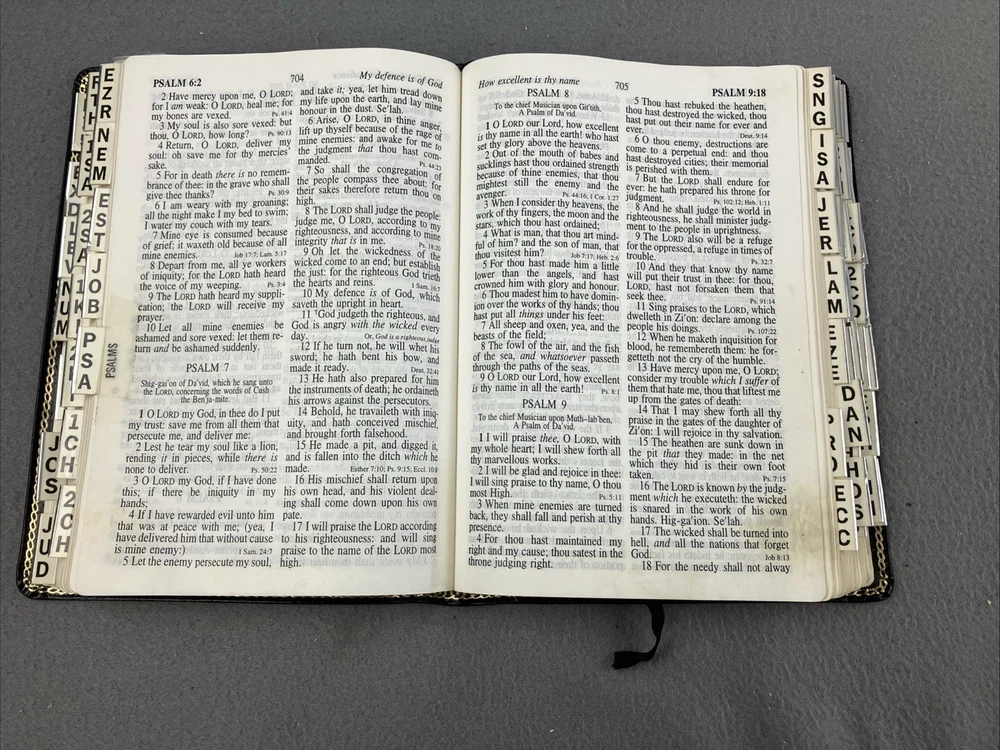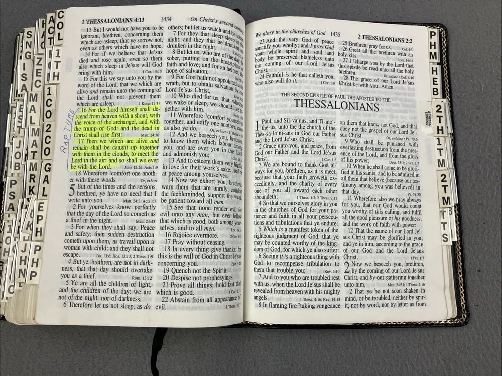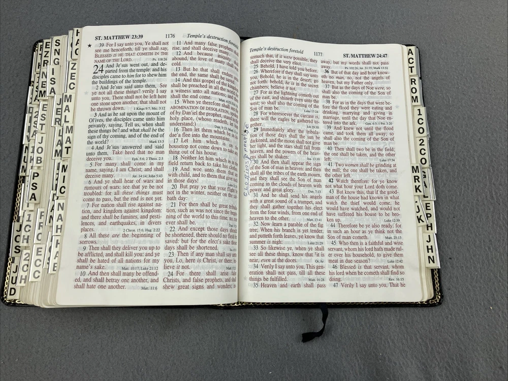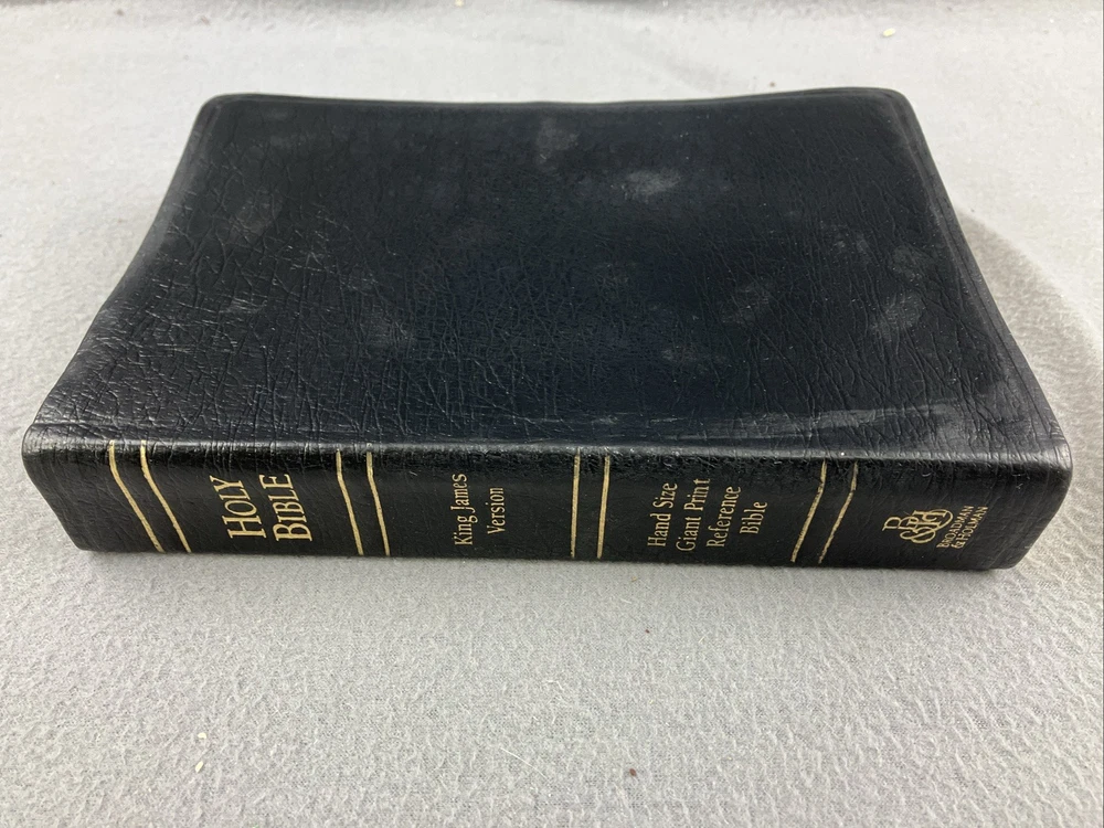 Holy Bible KJV Hand Size Giant Print Reference CornerStone Genuine Leather Tab GOOD CONDITION -- CLEAN COPY/NO MARKINGS ON THE INSIDE (see pics) *Item will be protected well for shipping and comes with a tracking number for confirmation.* I ship out items every day so expect a quick delivery!
