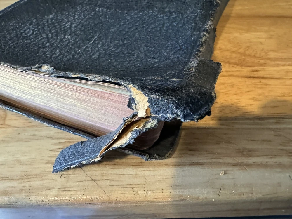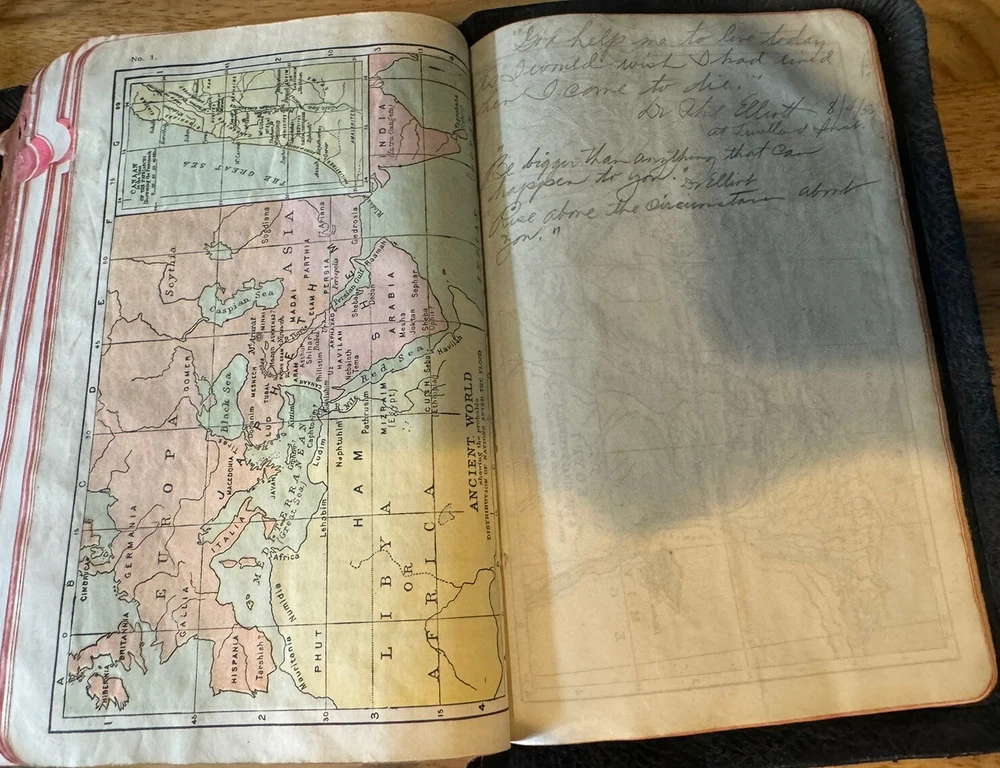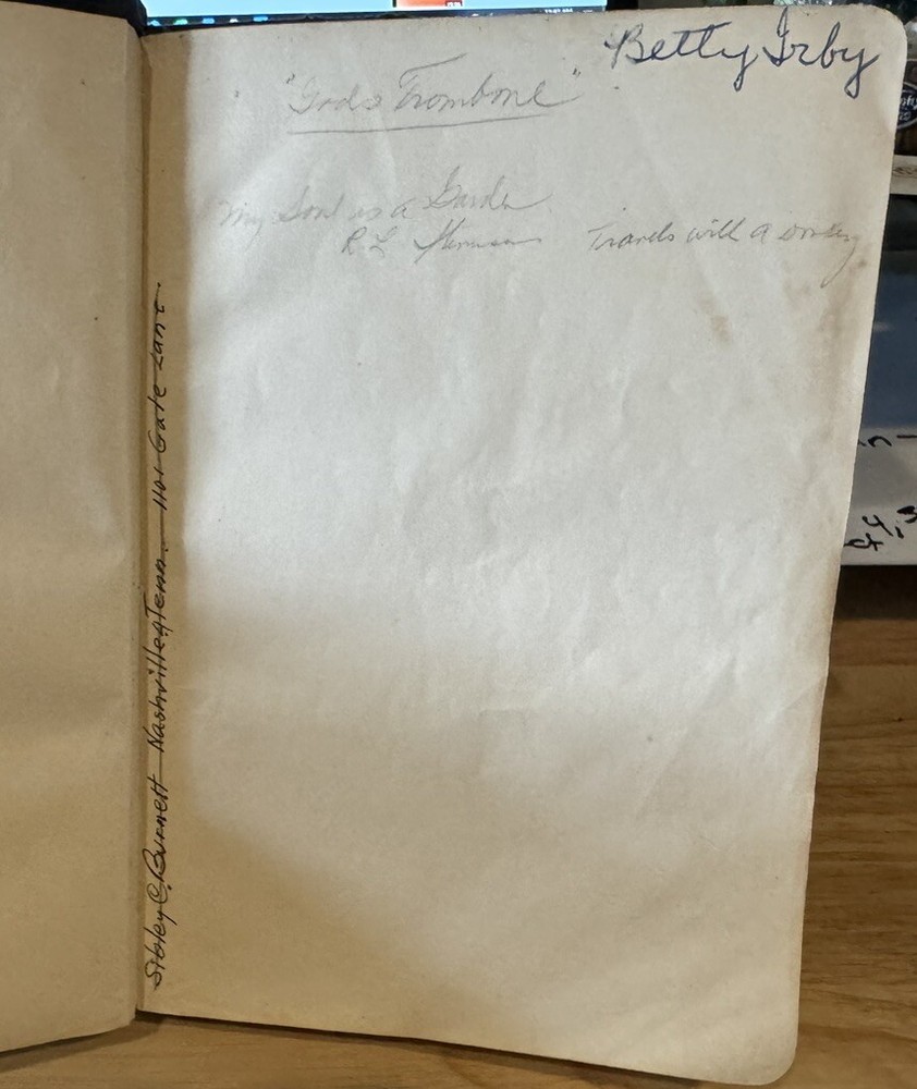 Cover shows wear. Name written on inside covers & notes written in back. See pics.