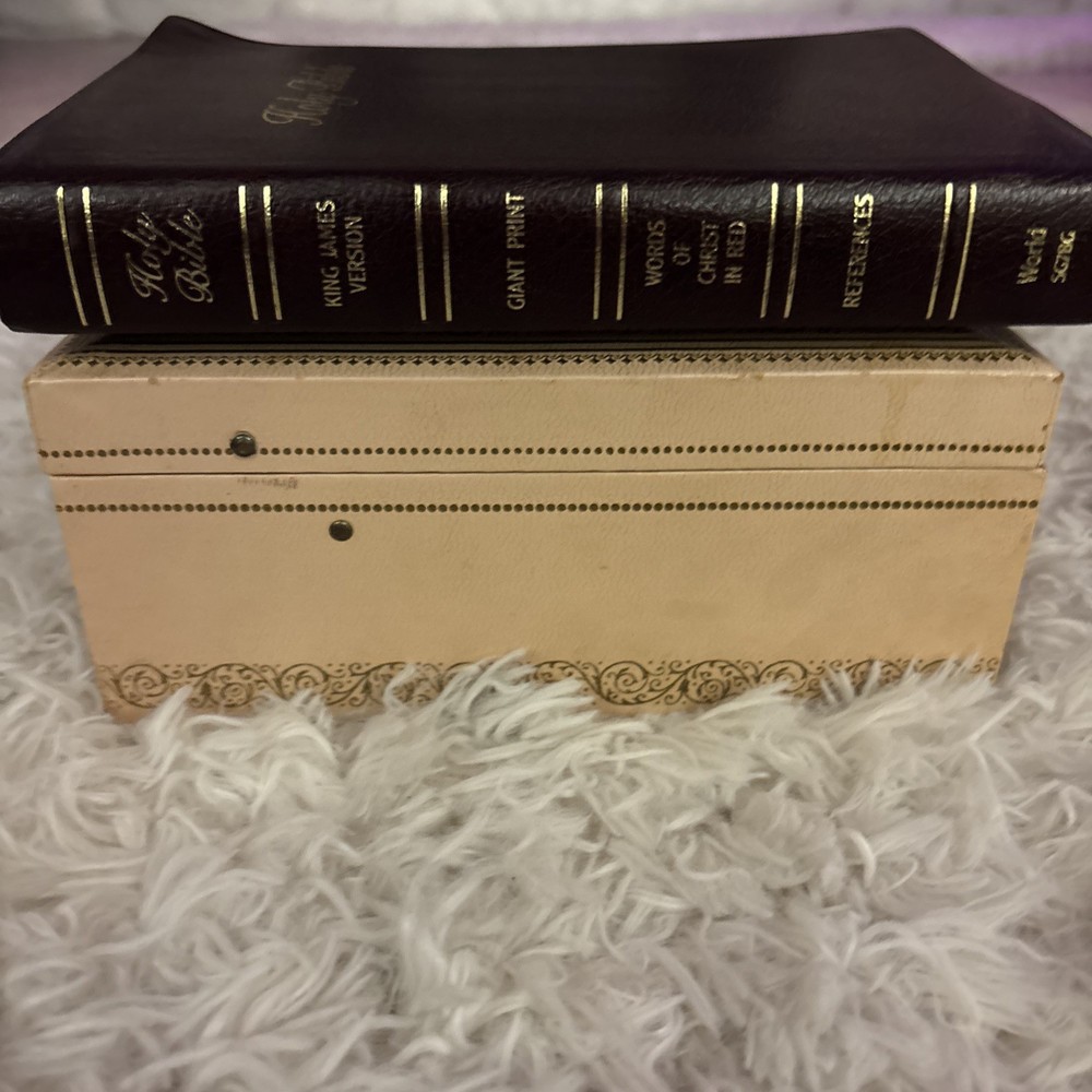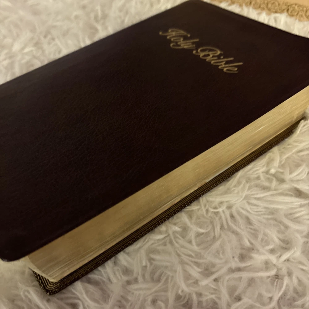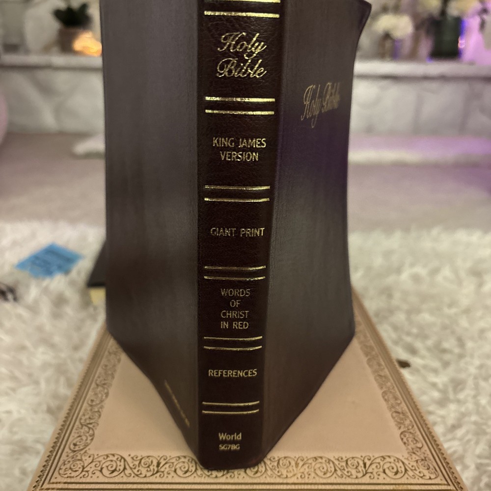 This beautiful leather-bound Holy Bible is a special edition published in 1986, featuring the Giant Print version of the King James Version (KJV). The book is indexed Extra large print! The Bible is in excellent condition and has been well-preserved over the years.