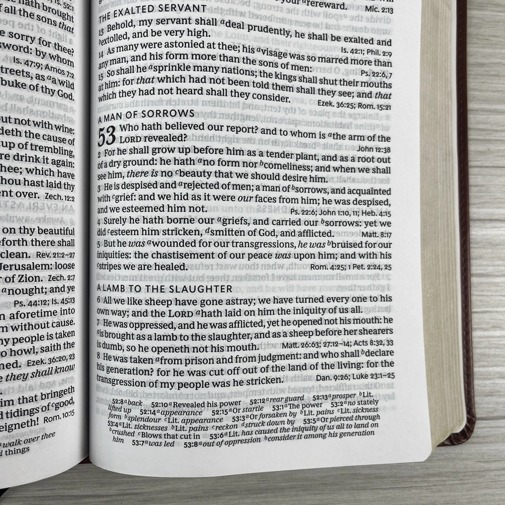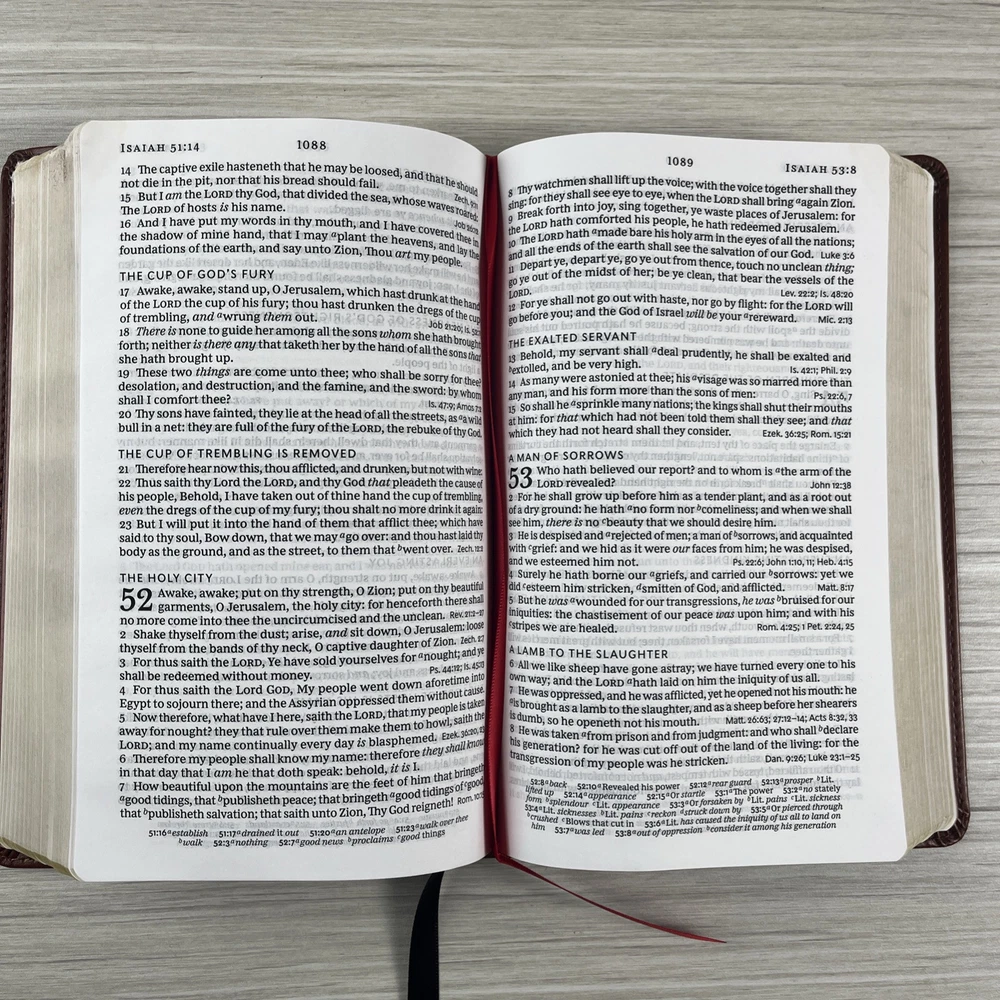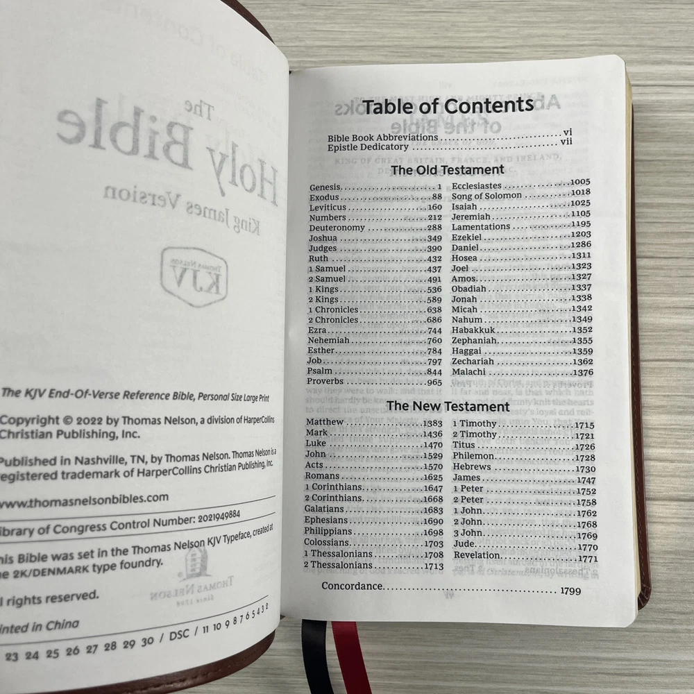 Bible is in excellent condition, exactly as described in listing. I'm very pleased with my purchase. Seller shipped the wrong Bible when originally shipped. Made purchase correction and apologized for the error, sending the correct Bible at no cost. I would absolutely purchase from seller again.