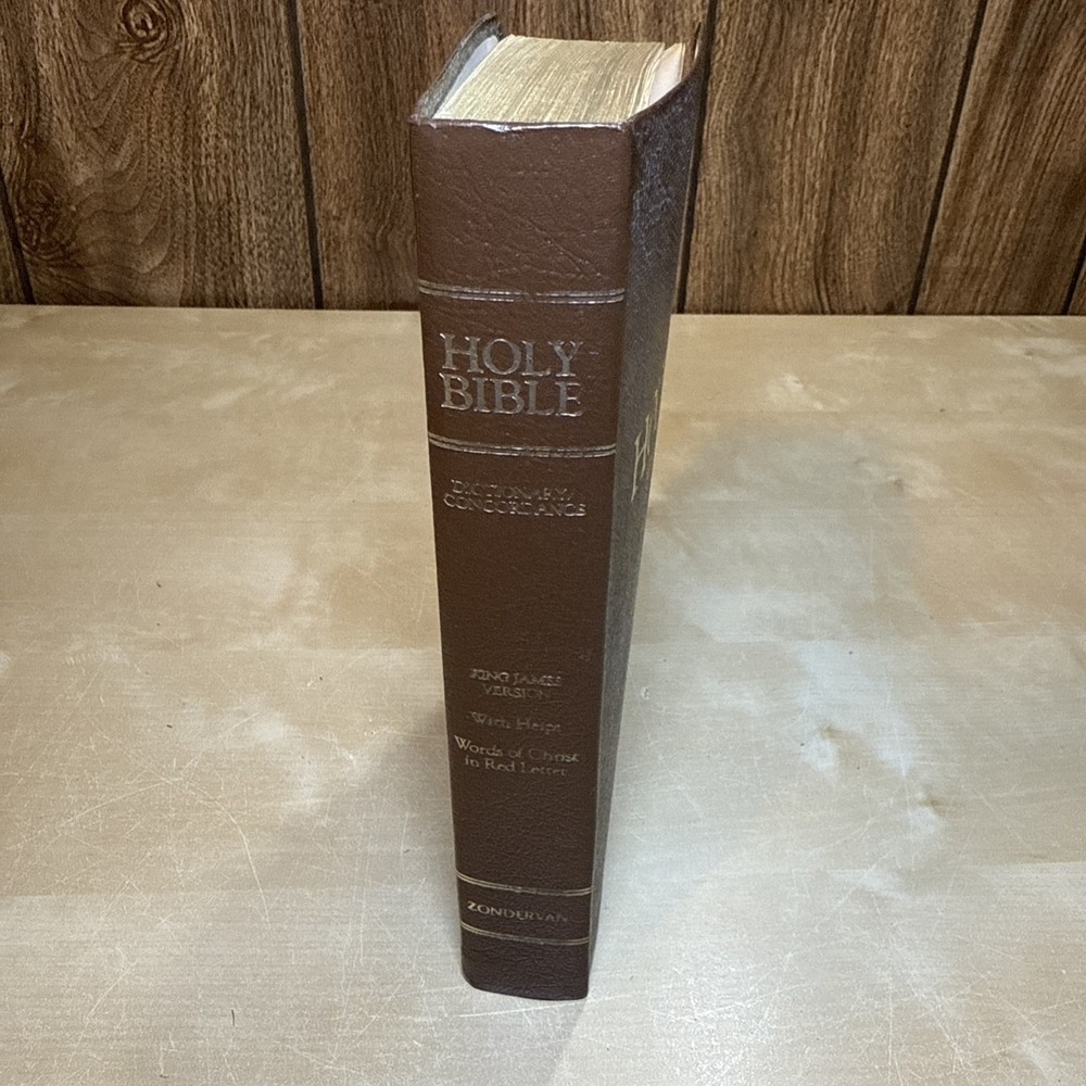 Holy Bible KJV Leather Dictionary Red Letter 1983 Brown Zondervan Concord. Condition is Good. Shipped with USPS Media Mail.