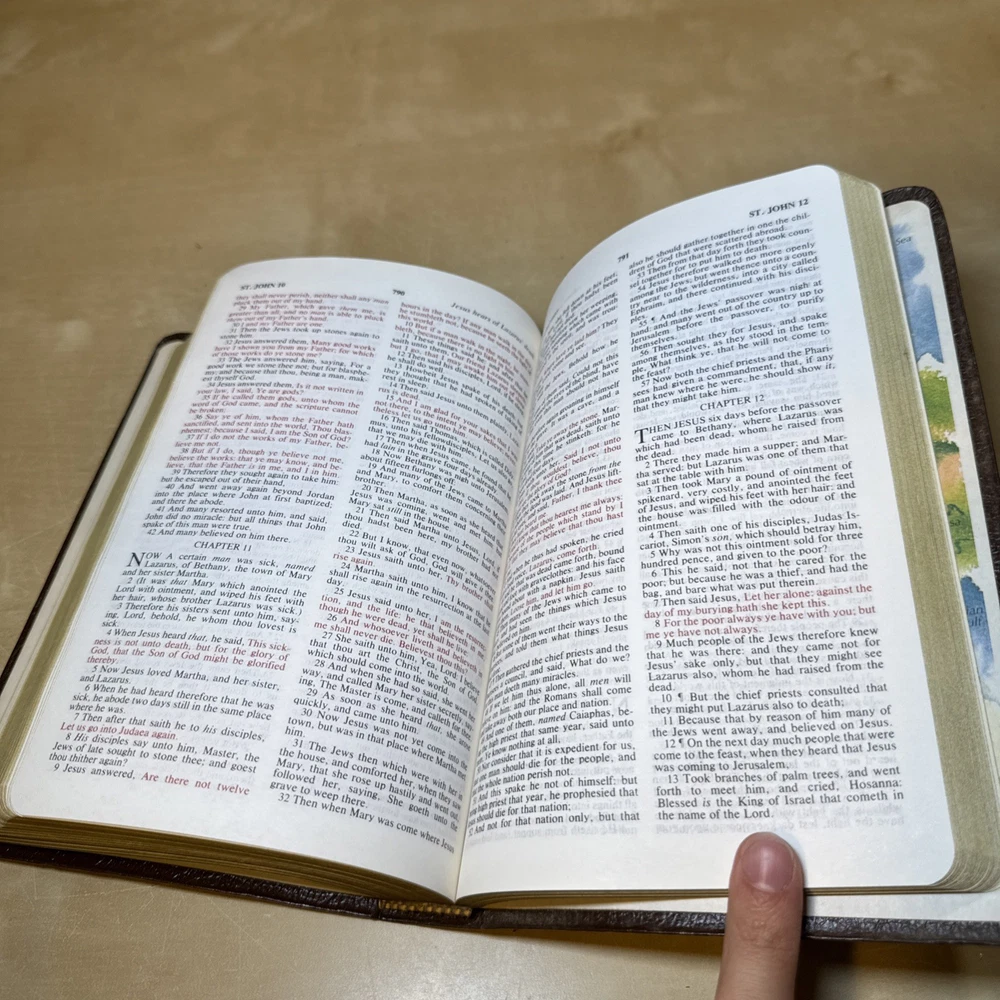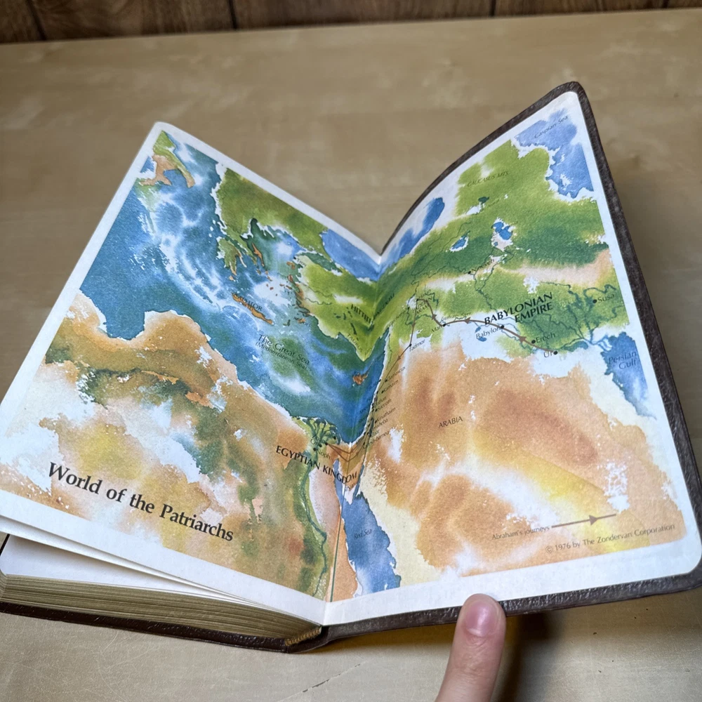 | Features | Leather Bound, Thumb Indexed, Family record, Concordance, Maps |