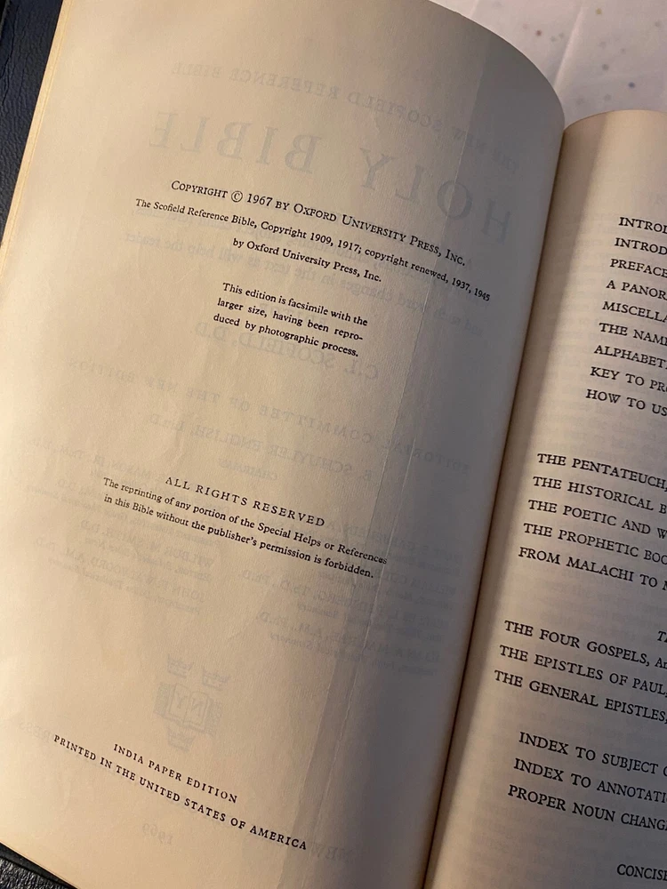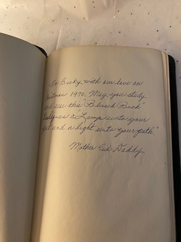 Name engraved on cover. Inscription on front end page. Noticed no there markings. Very nice Bible. Very good condition. USA:- FREE SHIPPING INTERNATIONAL rates vary, so please email me for rates before you bid. Most items are gift wrapped ! Always Handled and Packaged with Care!