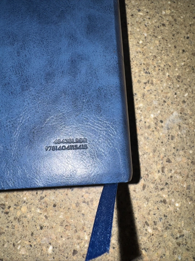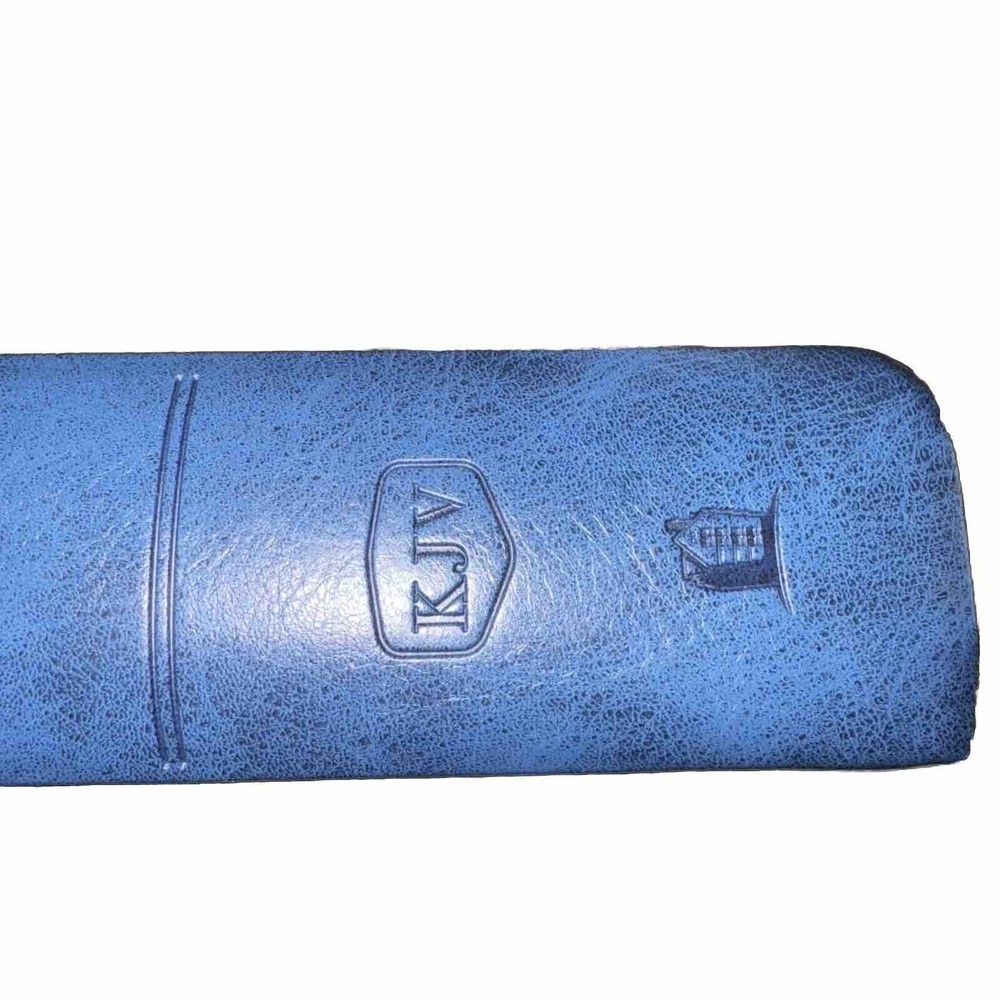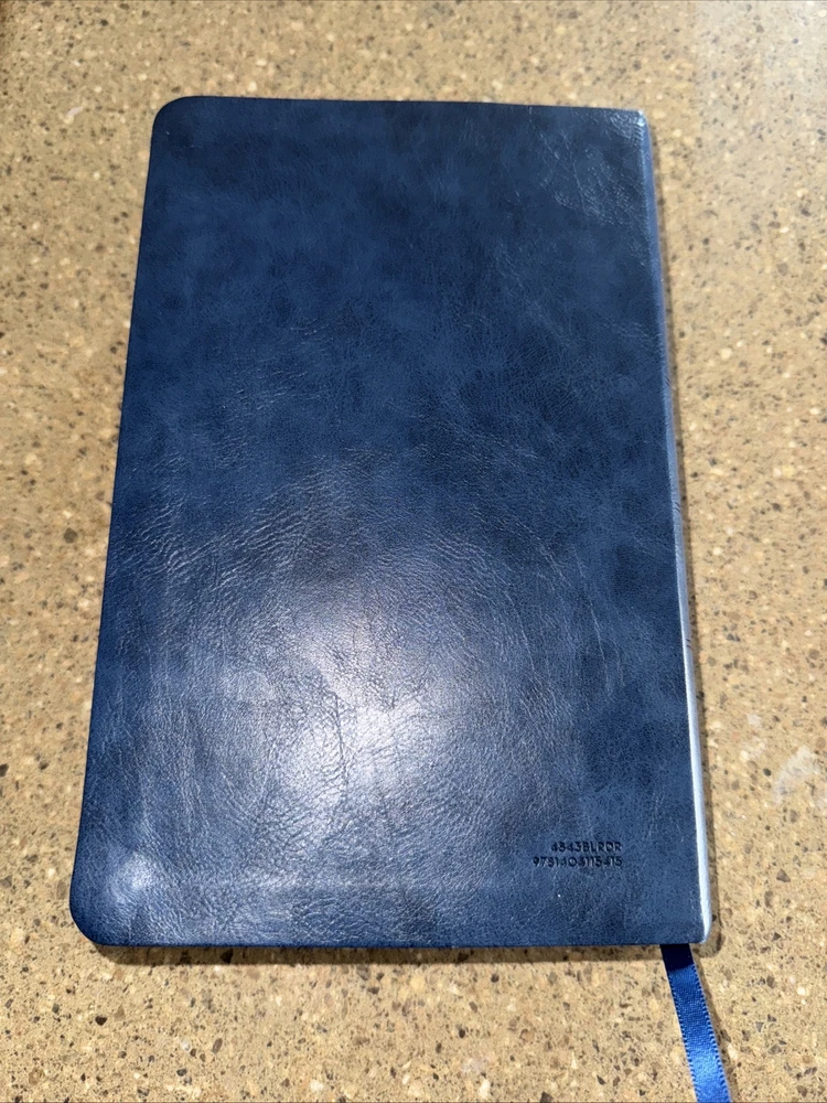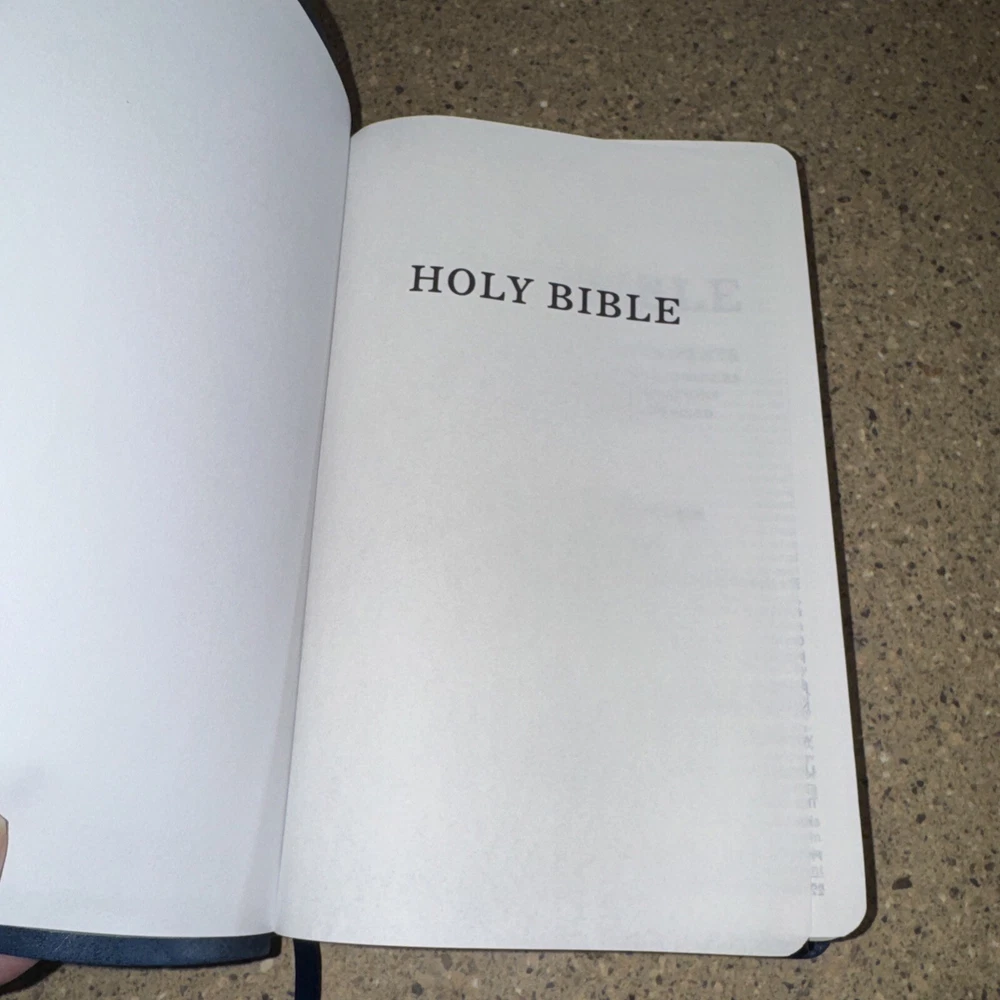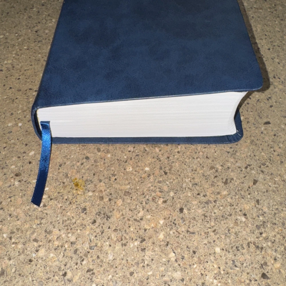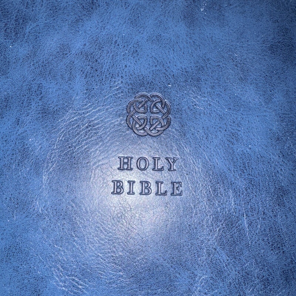 This Bible is a fantastic choice—large, easy-to-read print with vibrant red letters for Jesus' words. The blue leatherette cover looks elegant and feels durable. It’s in excellent condition, no markings inside, just a slight bend on one edge (shown in the photo). Perfect for daily reading or study!