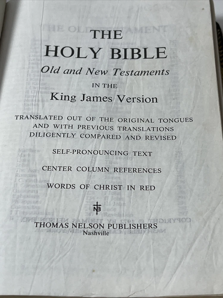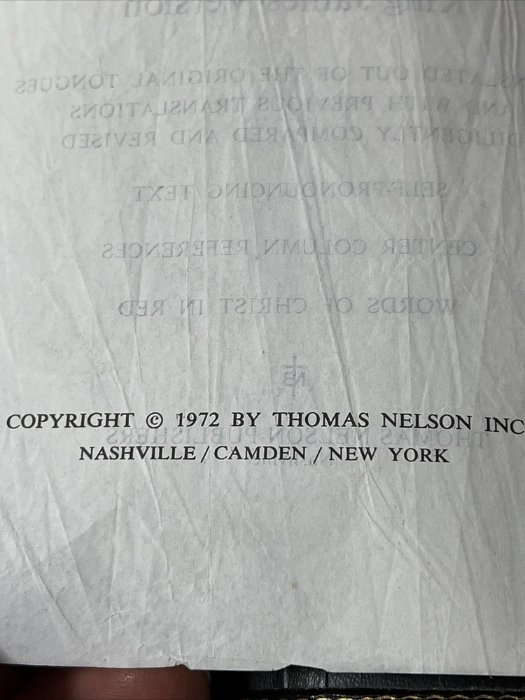 Bibliographic & Condition Details Title: Holy Bible 576 Author: Multiple Publisher: Nelson Publication Date: 1972 Binding: Black Genuine Leather Book Condition: Good Cover Condition: Good Some wear, Embossed Front see photos Page Condition: Good- no writing or highlighting Edition: Reference Printing: Unknown Book Type: Bible Features: Red Letter, Maps, Gold Gilt page edges Dimensions: 7 1/2" x 5 1/4" x 1 1/4" Notes: **Will Combine Shipping On Multiple Purchases, Please Request Invoice Before Paying So Adjustment Can Be Made**