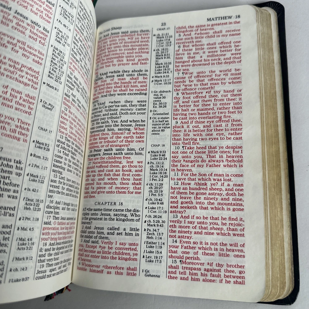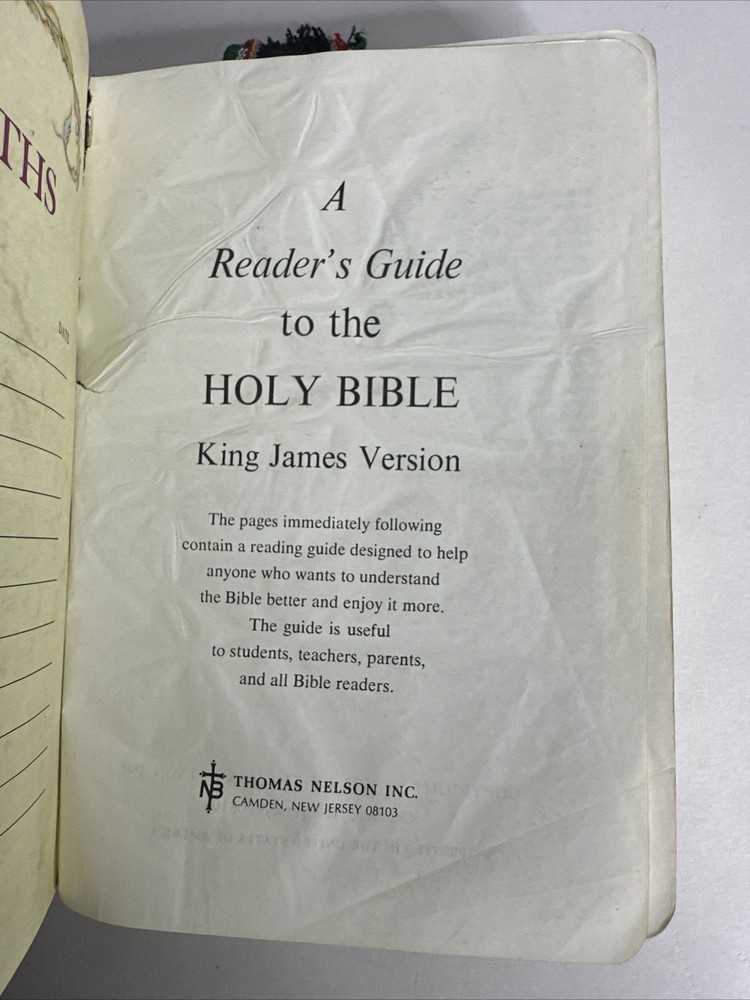 This Holy Bible KJV Reference Edition, published by Thomas Nelson in 1972, is a valuable addition to any collection. The genuine leather binding and red letter edition make it a beautiful and unique item. The book is signed and inscribed, with the option to personalize it further. With its focus on religion and spirituality, this Bible is perfect for anyone seeking spiritual guidance or wishing to deepen their knowledge of Christianity. The book is written in English and is suitable for readers of all levels. It is a vintage item, but its timeless message makes it a relevant and meaningful addition to any library.