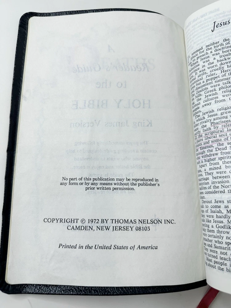Holy Bible KJV Reference Edition – 1972 Nelson – Red Letter – Genuine Leather This is a 1972 copyrighted edition of the Holy Bible, containing both the Old and New Testaments in the King James Version (KJV) . The item is used and shows some general wear and tear from typical use, but overall it's in very good condition . There are some handwritten notes and markings inside , which may add to its character and value for collectors or those who appreciate personal study insights. A great vintage piece for collectors or anyone seeking a classic KJV Bible. Feel free to message me with any questions! ***BUY SEVERAL ITEMS AND SAVE ON COMBINED SHIPPING*** ***NO RETURNS OR REFUNDS UNDER ANY CIRCUMSTANCES!*** ***BY PURCHASING YOU’RE AGREEING TO RECEIVING WHAT IS PICTURED*** ***All of my items come from a Smoke Free Environment*** NOTE: We always aprpeciate positive feedbacks from our customers to know they are happy with our product and services! We'll gladly return the favor! "You will receive shown in the images, In many of my listings m y pictures are my only description, so you can have a better visual idea of the item. So please look them over well. If you need additional pictures, please do not hesitate to send a message via the Ebay message system. Thanks for looking!