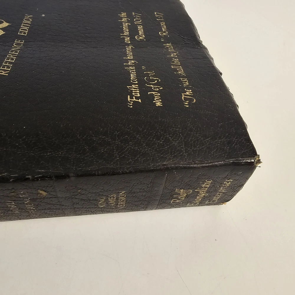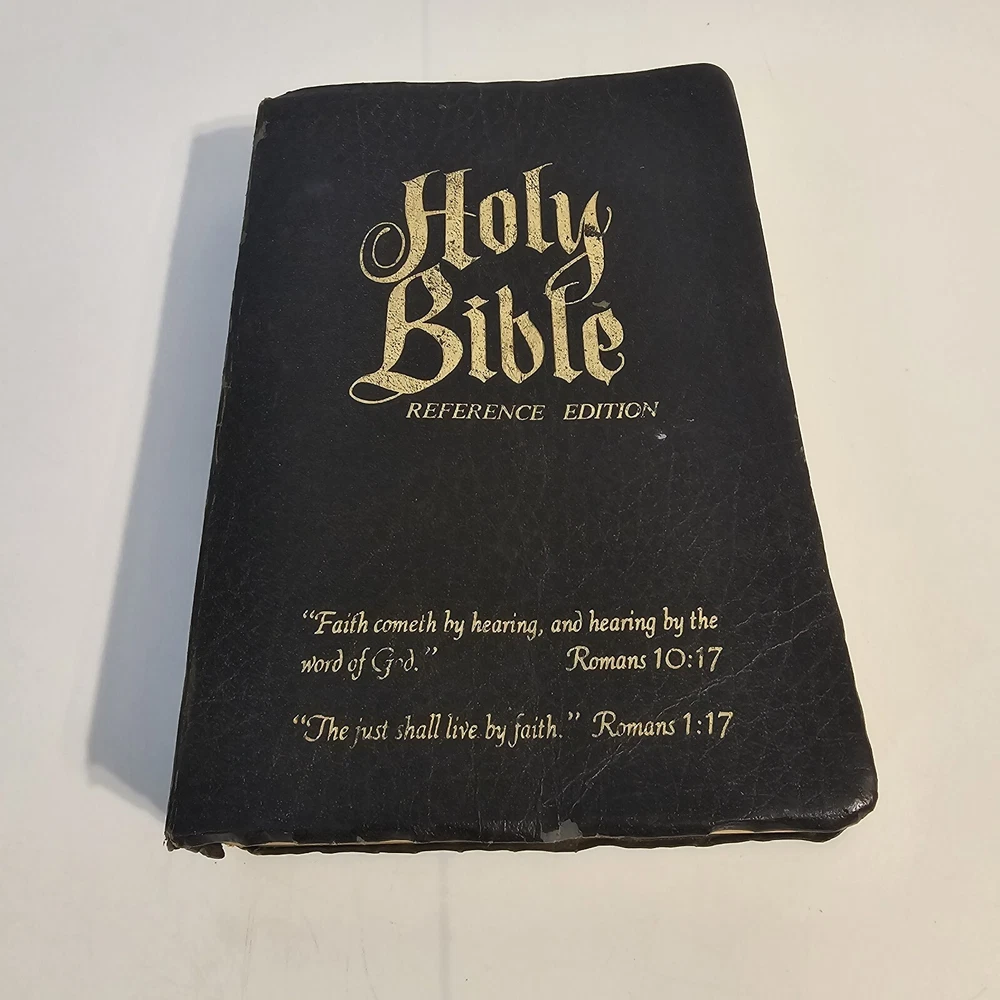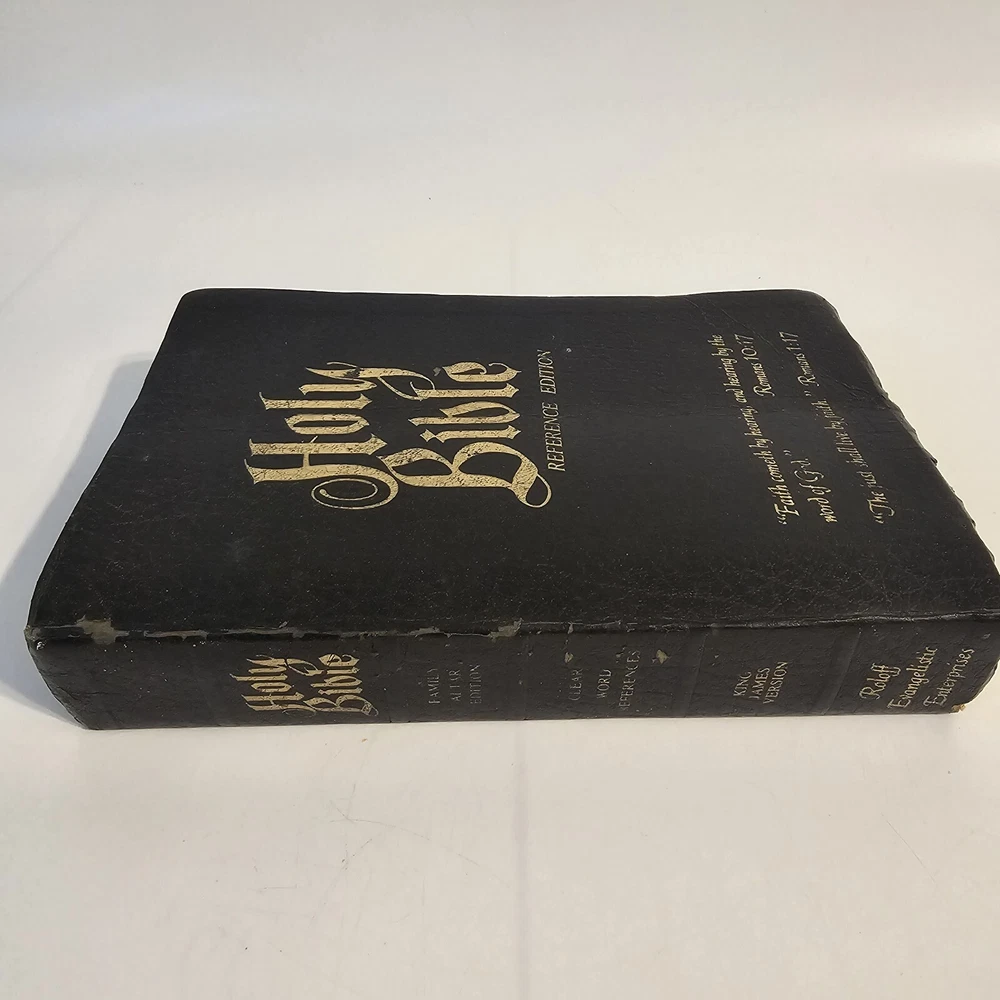 Holy Bible KJV Roloff Family Altar Reference Edition Giant Print Vintage Worn around edges. Name written on presented to page. All other family pages left blank. No torn pages. Some pages have bent corners. Staining on inside cover. See photos. Thank you!