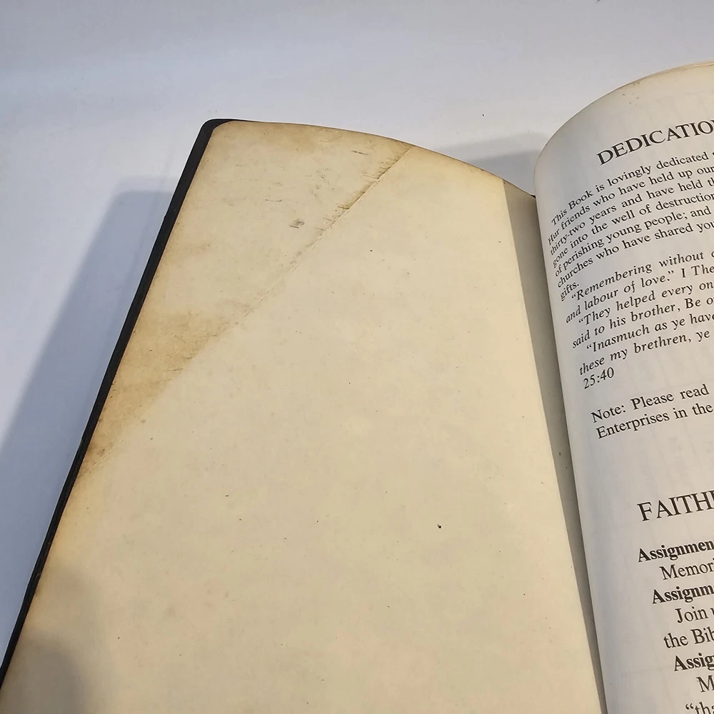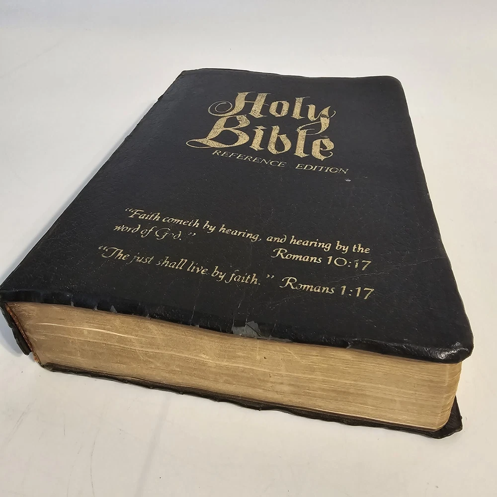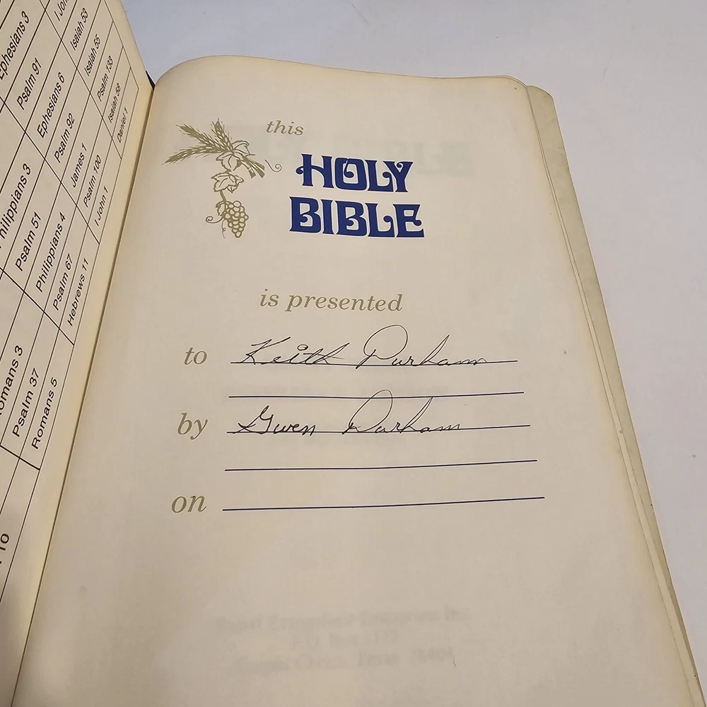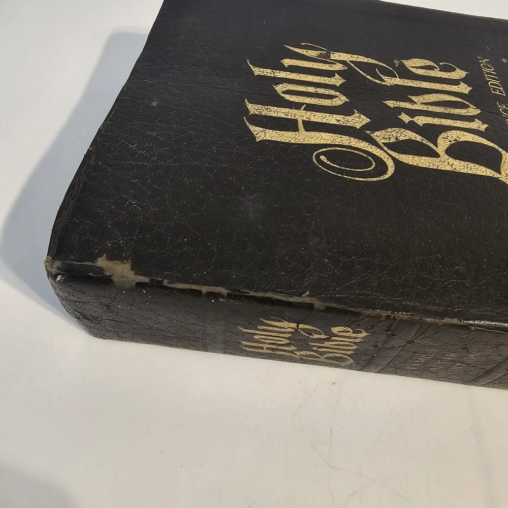 Holy Bible KJV Roloff Family Altar Reference Edition Giant Print Vintage Worn around edges. Name written on presented to page. All other family pages left blank. No torn pages. Some pages have bent corners. Staining on inside cover. See photos. Thank you!