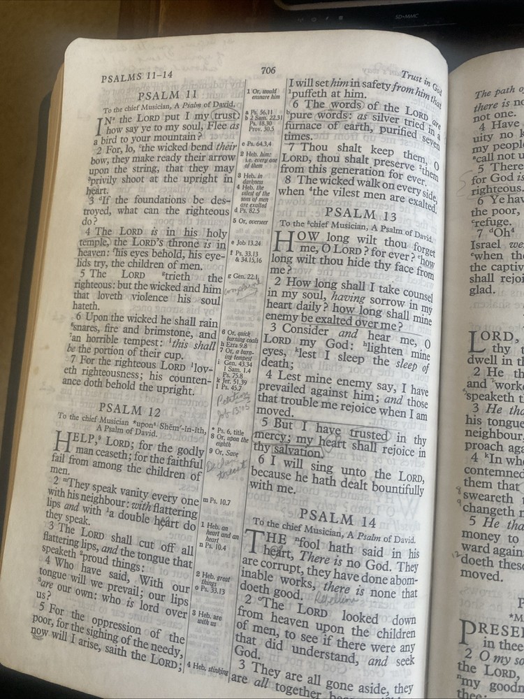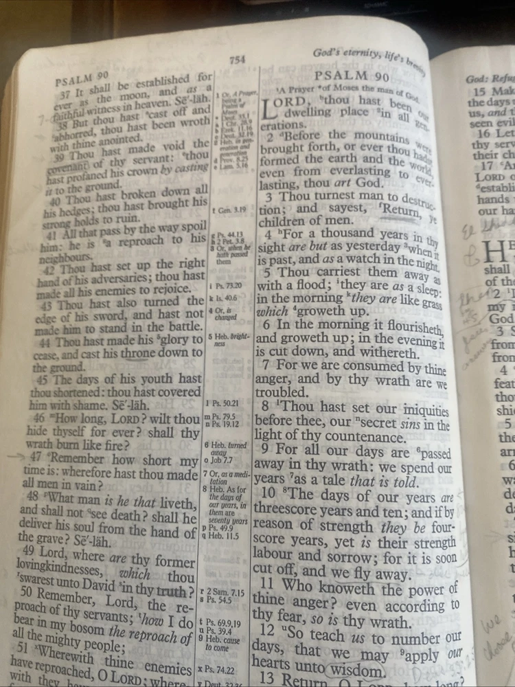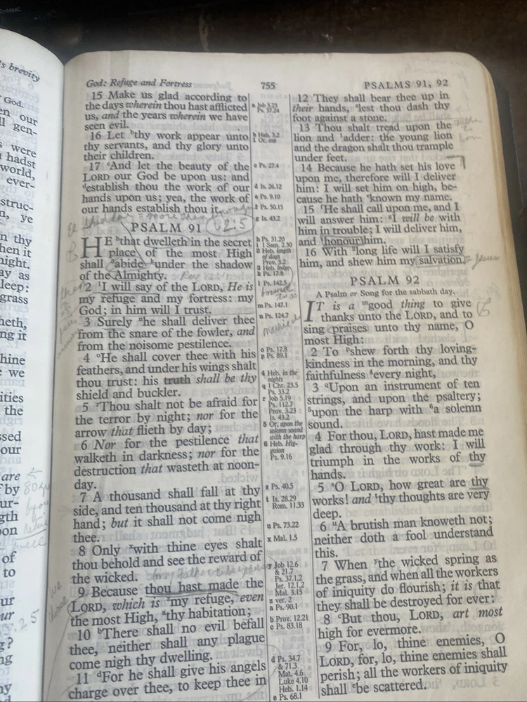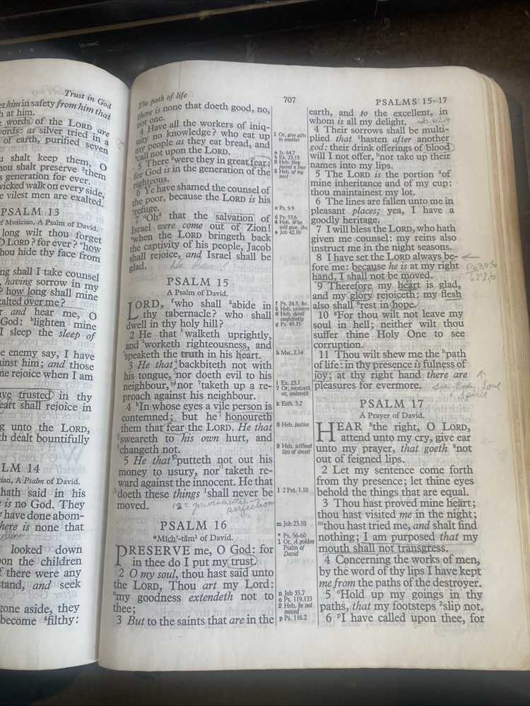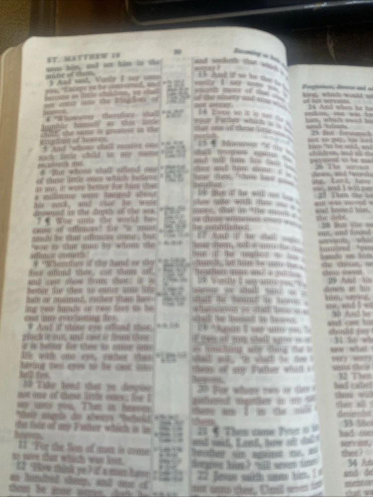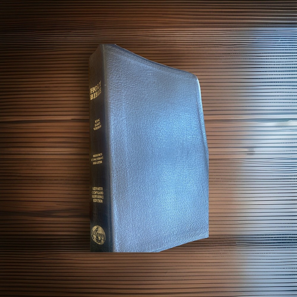The "Holy Bible Kenneth Copeland Reference Edition KJV Red Letter Leather Dark Blue" is a genuine leather bound Bible in the King James Version. It features red lettering for the words of Jesus, making them easily distinguishable. This Bible is authored by Kenneth Copeland and published by Kenneth Copeland Ministries, catering to young adults and adults who are seeking spiritual and religious guidance. The personalized aspect is not included, making it a standard edition suitable for individuals looking for a comprehensive and well-crafted Bible for personal study and reflection. As is, where is. Some notes in pencil throughout the Bible.