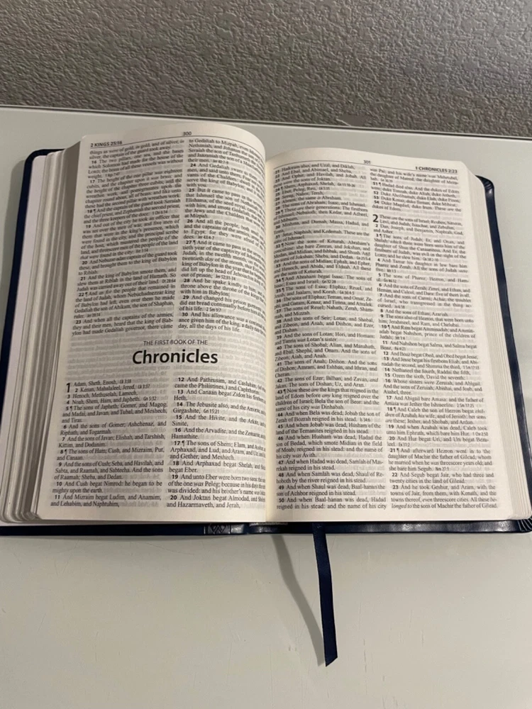 Holy Bible: King James Blue LeatherBound Thinline Reference 2014 Hendrickson Bibles Personalized See photos well packaged quickly shipped...