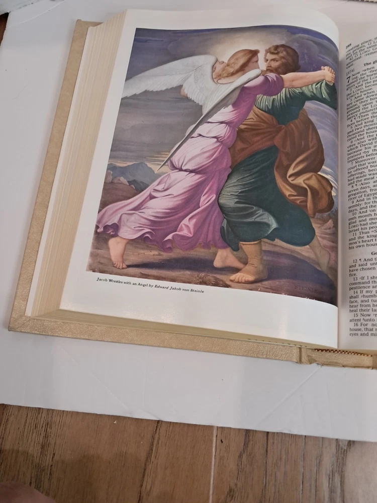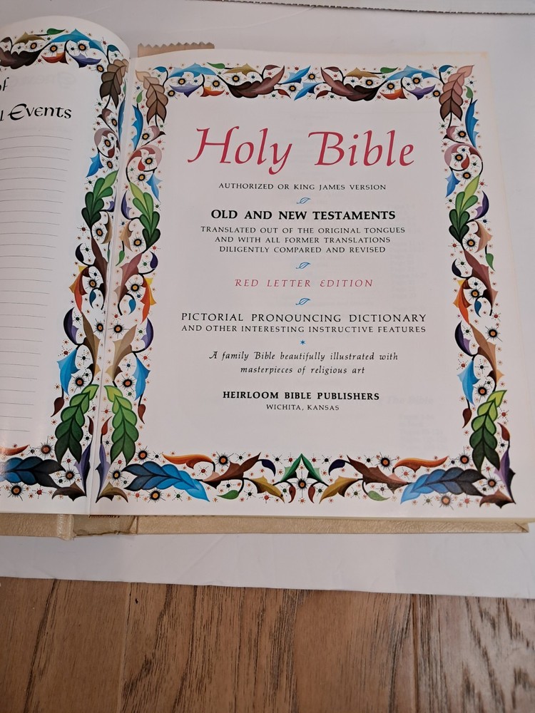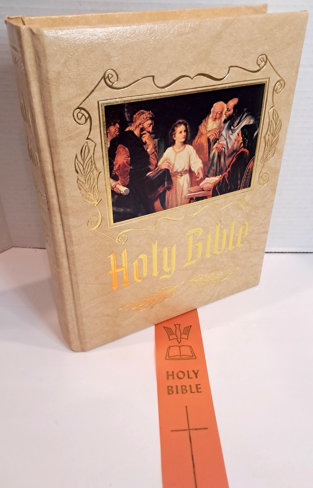 Dive into the timeless wisdom of the "Holy Bible King James Red Letter & Master Reference Edition Heirloom," a deluxe 1988 hardcover edition that combines faith with finesse. Published by DeVore & Sons Inc., this Bible is a treasure for both personal reflection and scholarly reference, featuring a rich array of illustrations and a large print format for an enhanced reading experience. Crafted for those with a profound interest in religion and spirituality, this Bible is bound in beautiful faux leather and is a part of the esteemed King James series. The English language text, meticulously curated by Outlet Book Company Staff, makes it an invaluable addition to any collection, weighing in at 20 oz with dimensions that speak to its substantial presence. The proceeds of the sale of this book will directly benefit the Freehold AAUW.