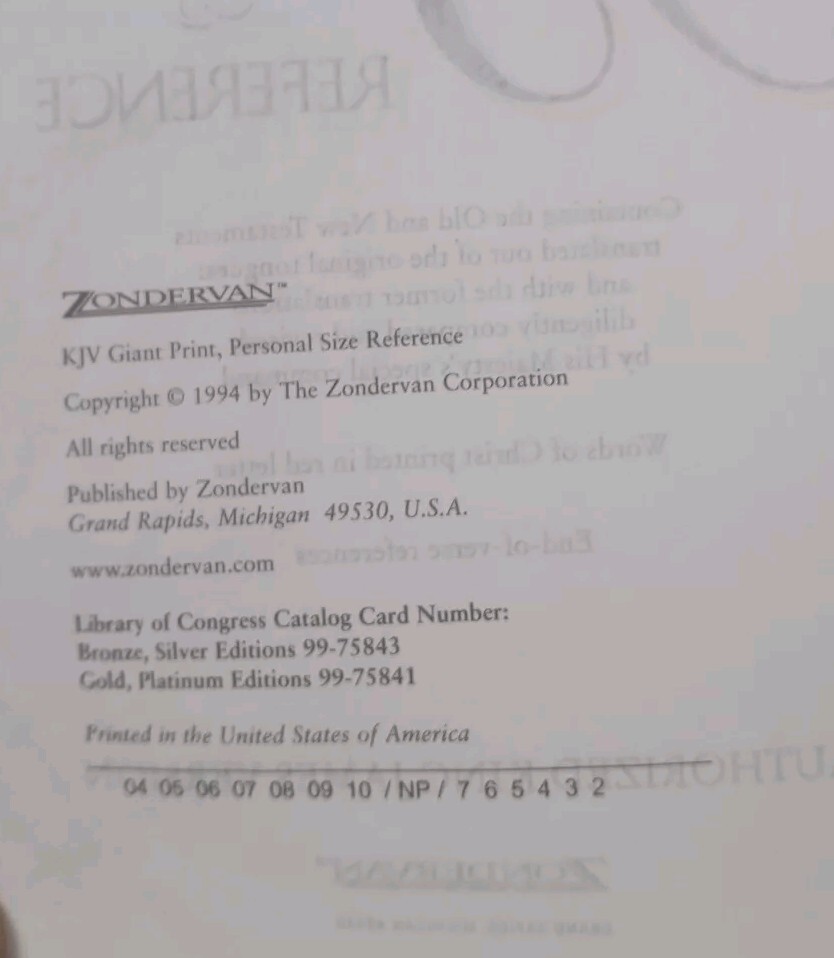 This Holy Bible King James Reference Bible from 1994 is a valuable addition to any collection. Published by Zondervan and bound in bonded leather, this Bible features giant print for easy reading and a plethora of references for deeper understanding. The English language and religious/spiritual genre make it a great choice for anyone seeking spiritual guidance. The book title, Holy Bible, and author, Holy Spirit, highlight the importance of this spiritual guide. The topics of reference and Bible further emphasize its significance. PRETTY DECENT CONDITION. SOME OF THE GOLD IS WORN OFF THE PAGES. OTHER THAN THAT IT IS PRETTY DECENT. CHECK OUT THE PHOTOS FOR CONDITION AND DETAILS. THANKS! C6R2S1