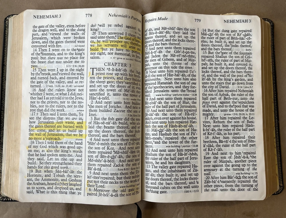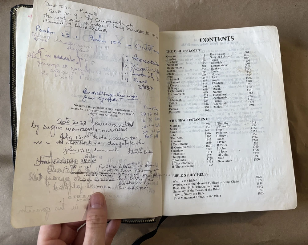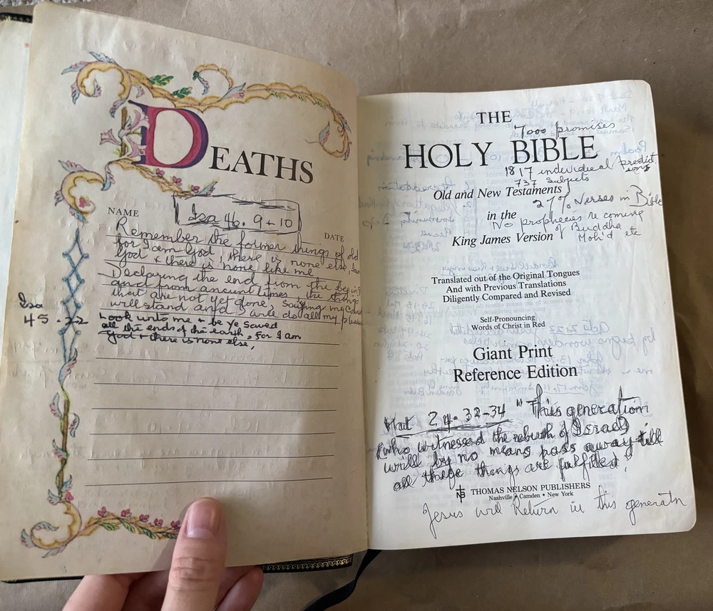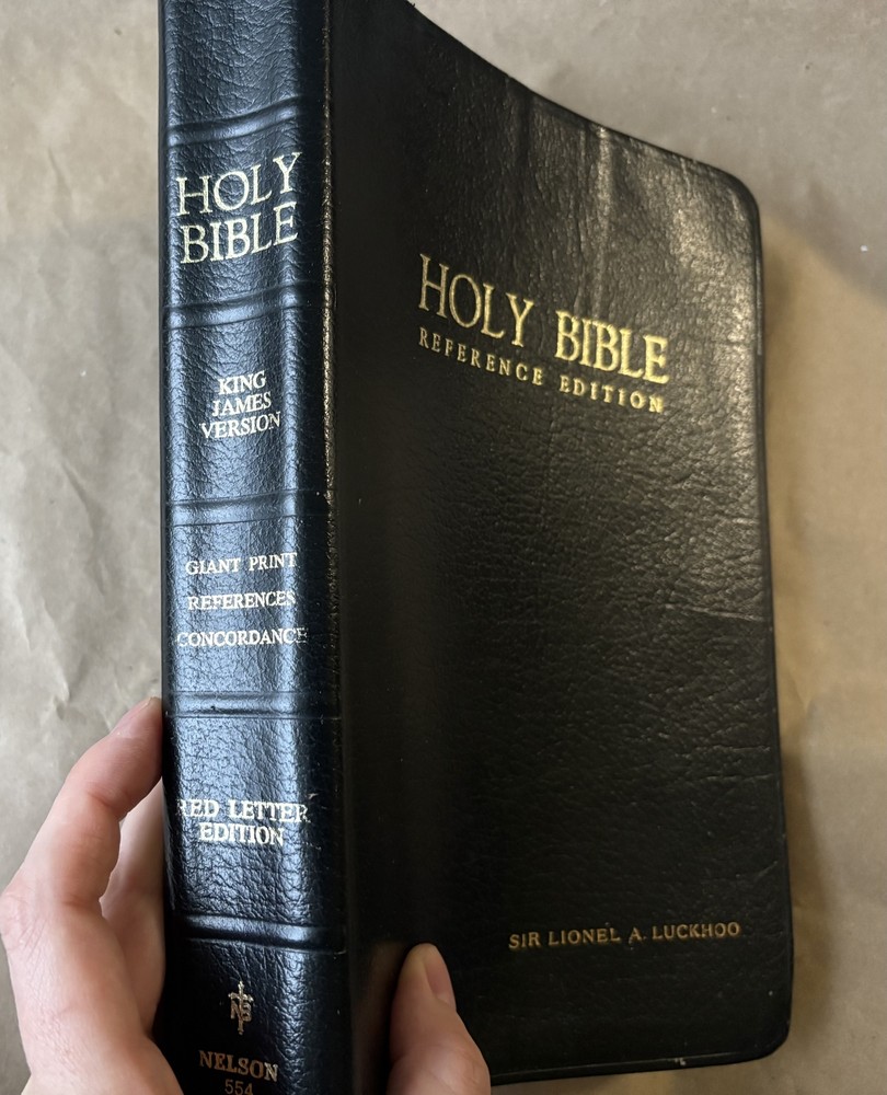 Explore the timeless wisdom of the Holy Bible in this reference edition. This King James Version is perfect for study and reflection. Published in 1976 by Thomas Nelson Publishers, this leather-bound edition is in giant print for easy reading. It contains the complete Old and New Testaments, along with valuable study helps. Binding is firm, and pages are well-preserved despite heavy markings and light staining. The cover shows gentle signs of age, but overall, it remains a valuable addition to any collection. Only one in stock. Once it’s gone, it’s gone. Ships fast, packed with care. Click “Buy Now” to make it yours. ---- ✨ Details ✨ Publisher: Thomas Nelson Publishers Year: 1976 Format: Hardcover Length: 1849 pages Size: 10"x7"x2" ✨ Condition ✨ Fair. Heavy markings, light staining, and gentle cover wear. Negligible yellowing. See pictures. ✨ Disclaimer ✨ This book is sold AS IS. There are no refunds. Please review the images carefully to ensure you know what you're buying.