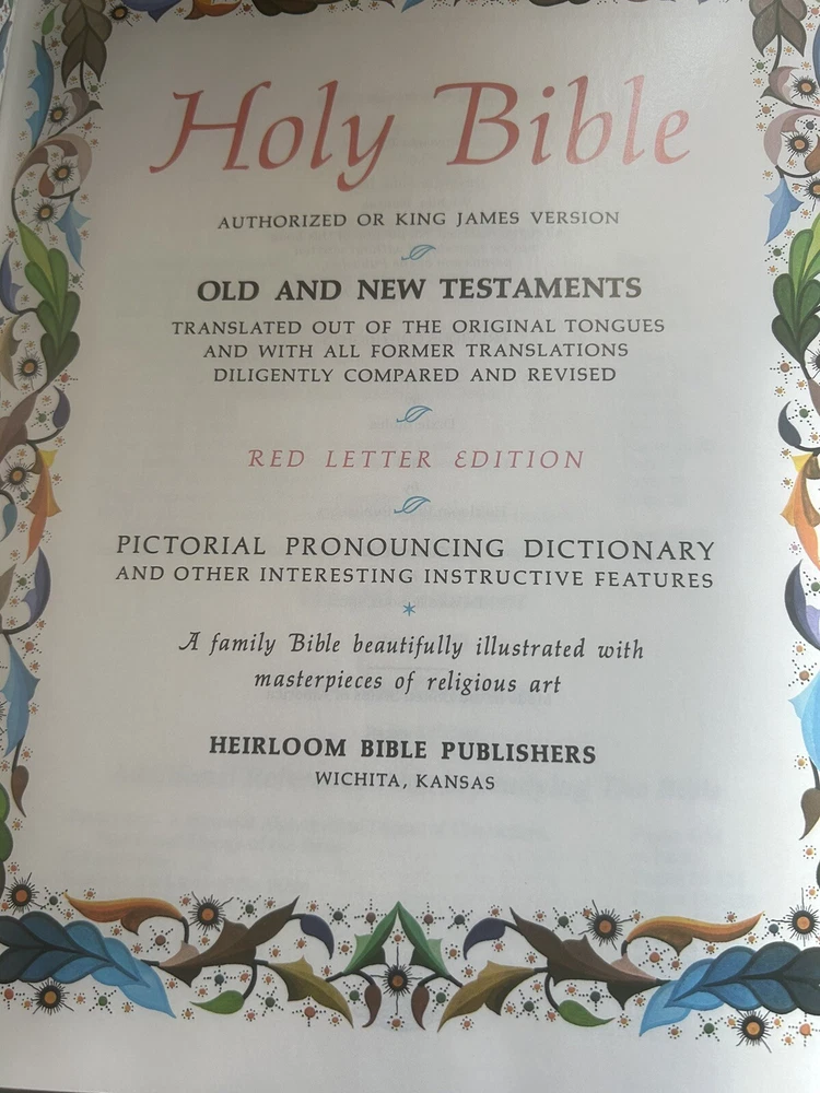 Vintage Holy Bible Master Reference Edition Red Letter Edition Heirloom Bible Publishing 12x9x2.5 inches Good Condition, no writinG inside Copyright 1988