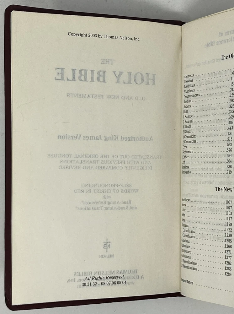 Holy Bible - King James Version - Giant Print - Reference Edition with Concordance 2003 Words of Jesus in Red Nelson 881CBG Minimal pencil marking in the margins on select pages. Please see pictures to determine the exact condition of this book. Please send a message if you have any questions. We ship promptly.
