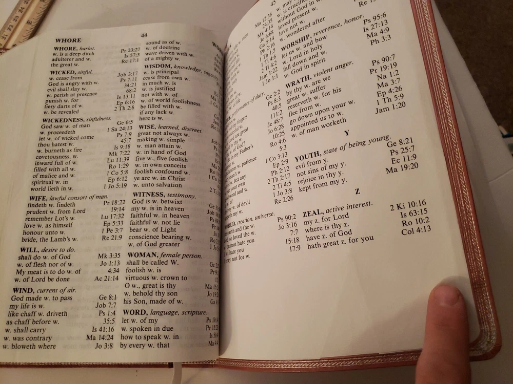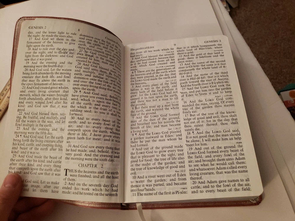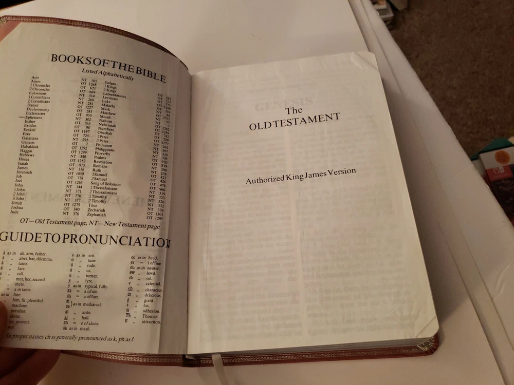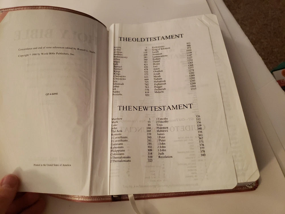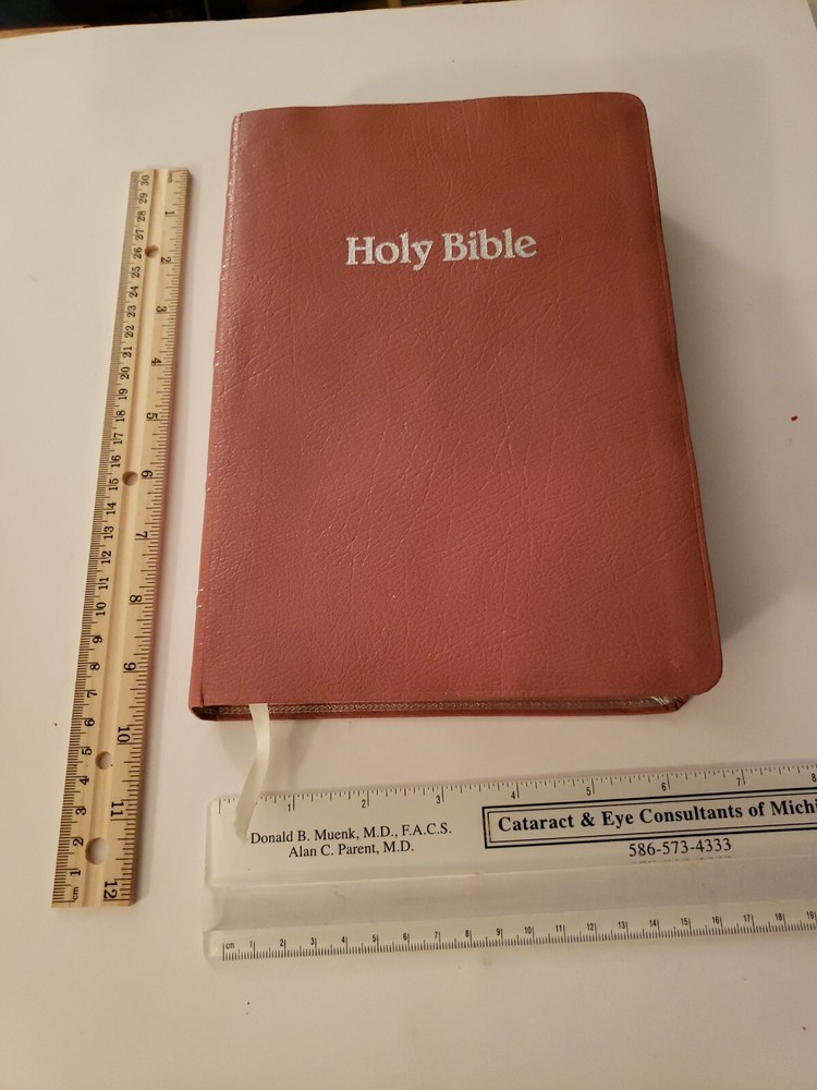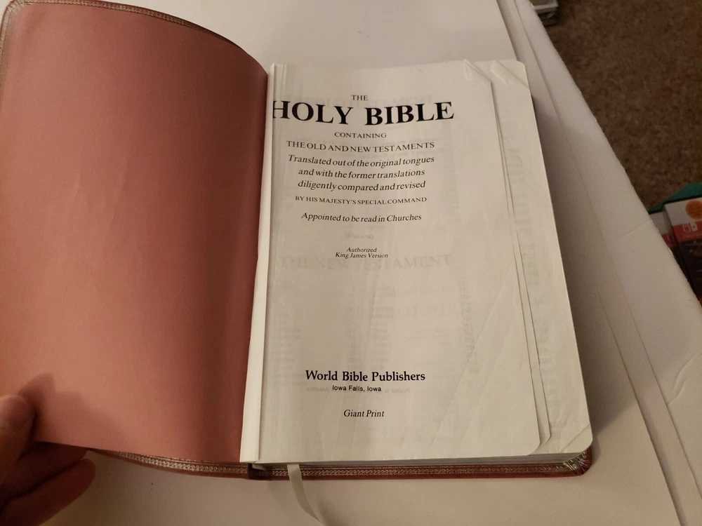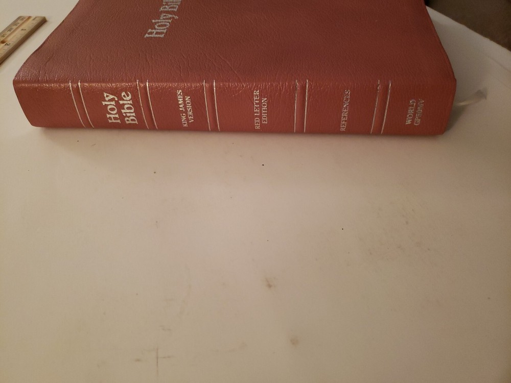 Holy Bible King James Version Red Letter Edition References World GP50MV 1986. Nobody wrote or highlighted anything in this book. You will notice from the photos that the first and last few pages have some wrinkling. Zipper case is included!!