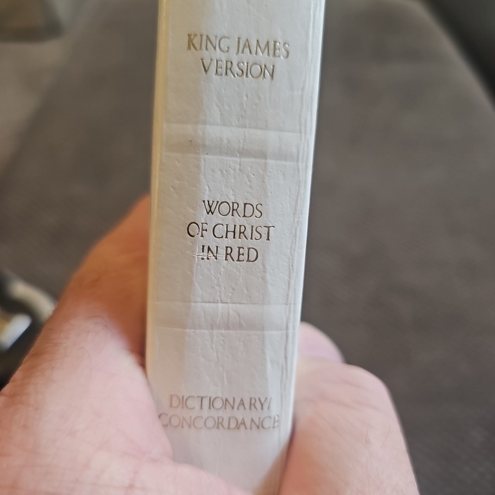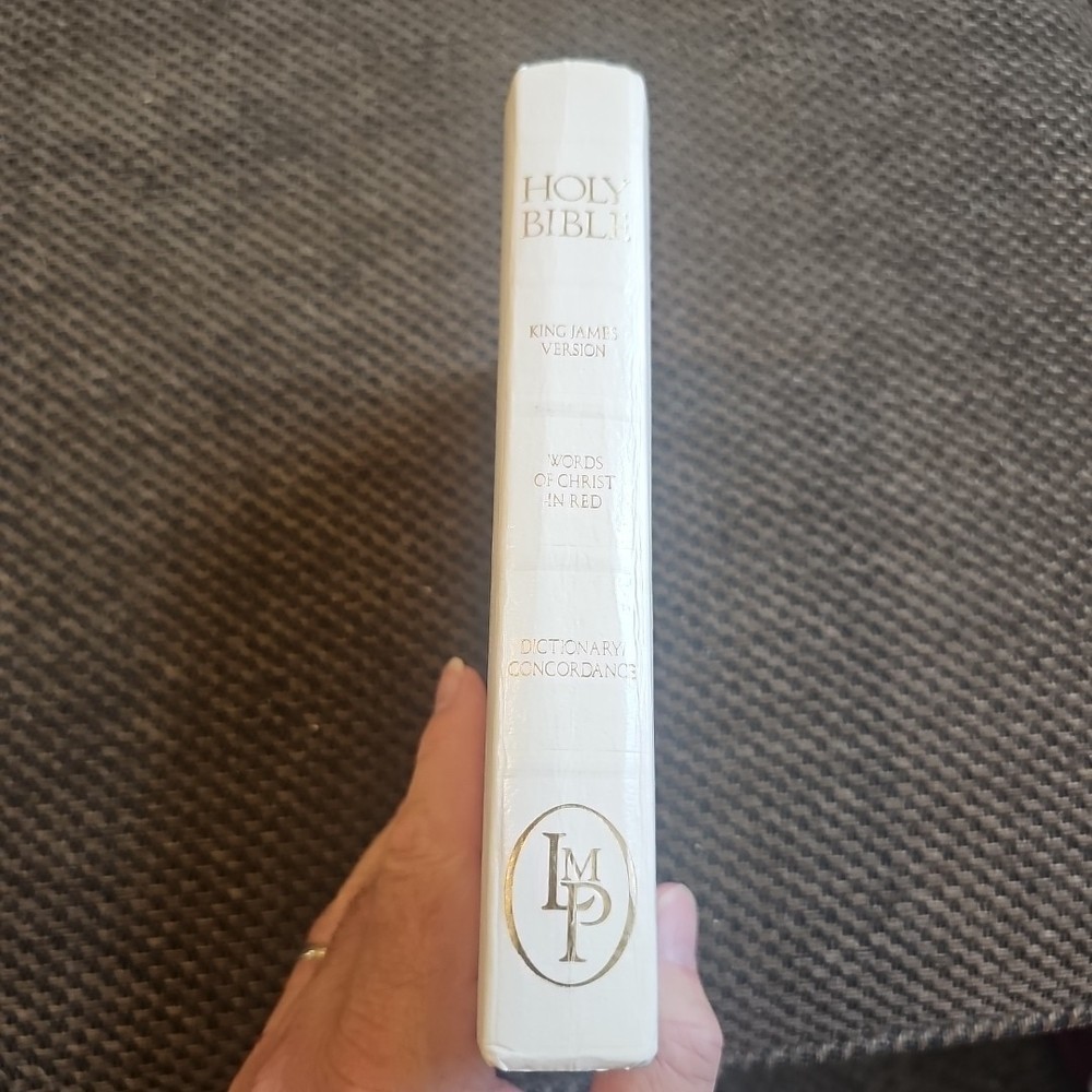 This beautiful white leather soft cover Holy Bible King James Version Red Letter Edition is a must-have for anyone interested in religion and spirituality. With 1568 pages of nonfiction narrative, this book is a great reference for anyone studying the Bible. Published by Harper in 1984, this vintage edition is a rare find for collectors and enthusiasts alike. The book measures 8.4 inches in length, 6 inches in width, and 1.3 inches in height, with a weight of 30 ounces. It features a beautiful red letter edition and is perfect for anyone looking for a gift Bible. The book is written in English and is suitable for anyone interested in the King James Version. Beautiful Bible