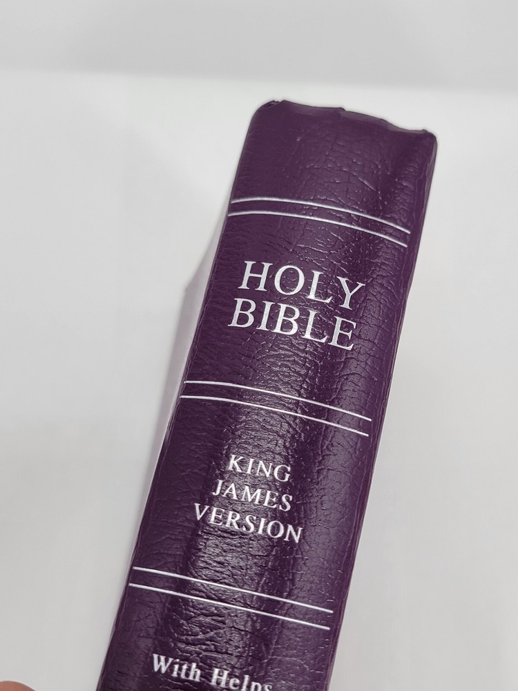 Holy Bible King James Version With Helps Words Of Jesus In Red Leather Purple **Good Used Condition**Has Some Light Cuffs On The Front Please See Photos** Please Check The Rest Of Our Store For Any Other Products You May Be Interested In, Always Up To Making Deals On Multiple Item Orders Thanks https://www.ebay.com/str/hensleystore *Due to the different monitor and light effects the actual color of the item might be slightly different from the color shown on the pictures. thank you!*