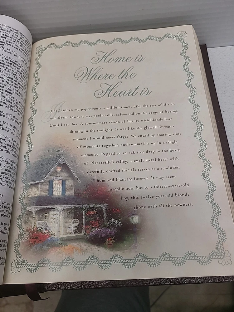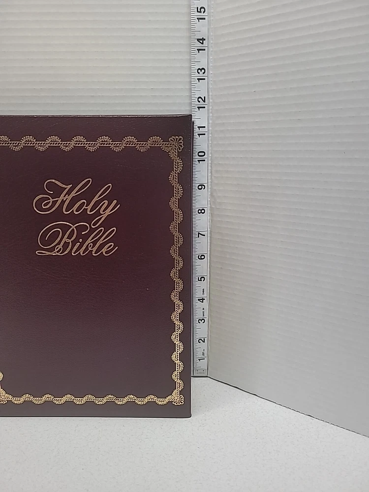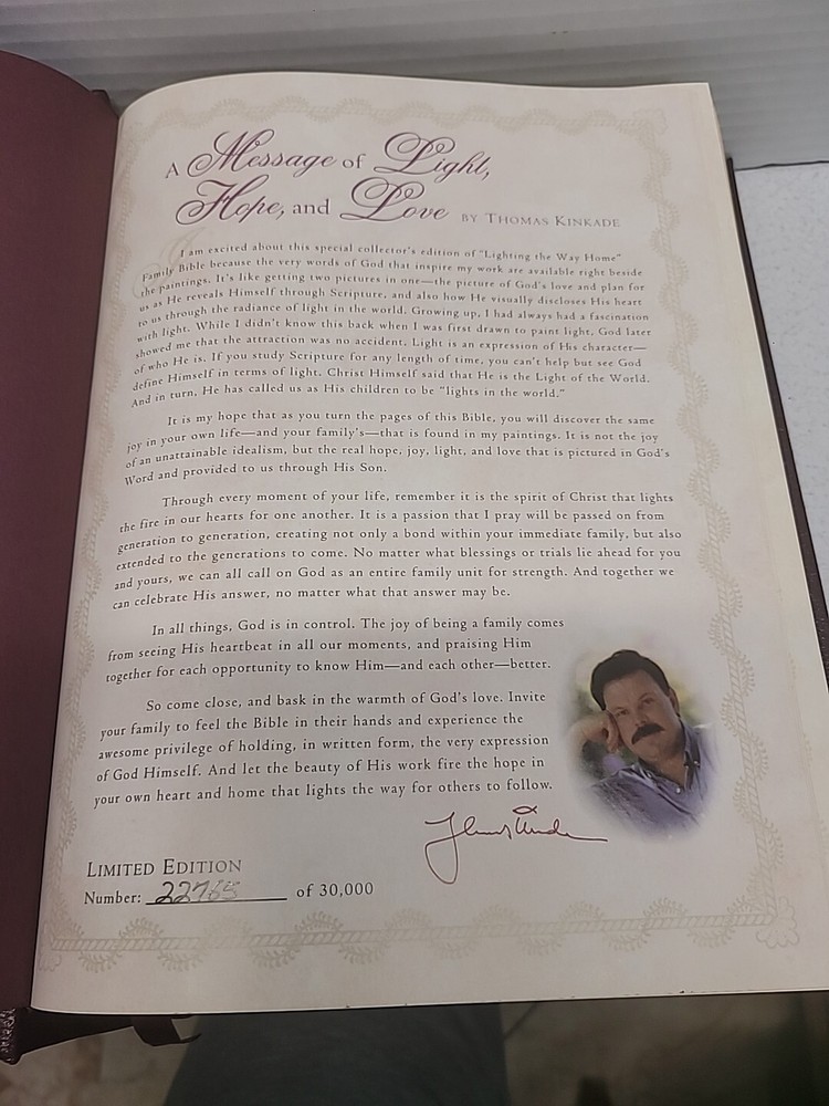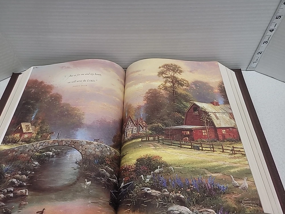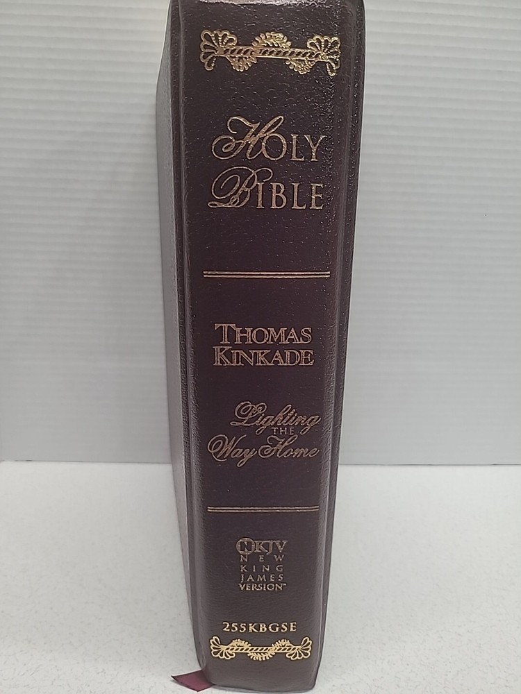 Holy Bible Lighting The Way Home By Thomas Kinkade, a beautiful edition of the Bible published by Thomas Nelson Publishers in 1985. This Family Reference Edition is bound in leather and features a New King James Version translation. The book measures 11.5 inches in length and 8.5 inches in width, making it a perfect size for reading and study. The artwork of Thomas Kinkade adds a unique touch to this religious and spiritual genre book. This Bible is a great addition to any collection and a wonderful gift for loved ones.