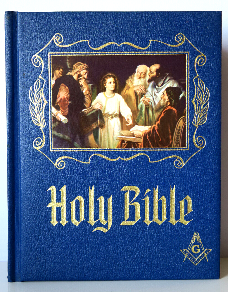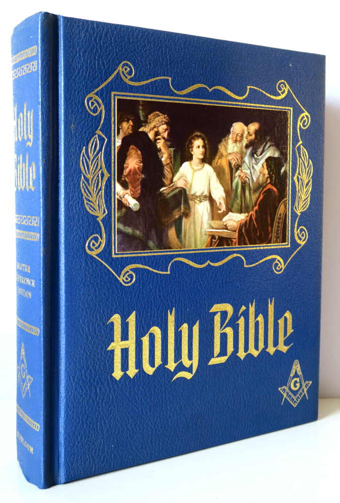 Holy Bible Masonic Master Reference Edition Heirloom Red Letter 1971 Vintage large format hardcover book in very good - excellent condition. 2 names handwritten inside front cover; no other markings. Firm spine and binding, flat boards, bright pages. Pages are supple with no tears, creases or odors. Some light scratches to gold gilt edges. Please inspect photos before purchasing and do not hesitate to contact us with any questions. Packed carefully and shipped quickly via USPS Media Mail. Please check our eBay store for many other Books. Shipping costs would be reduced for multiple items purchases