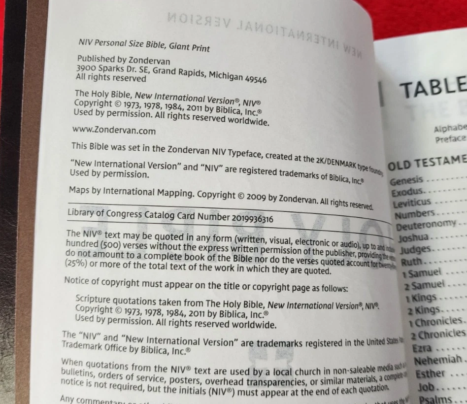 HOLY BIBLE NIV - NEW INTERNATIONAL VERSION • GIANT PRINT • Personal Size • Red Letter Edition • Brown Ribbon Mark • Maps Zondervan 2023 BROWN LEATHERSOFT™COVER Size: abt 5.5" x 9" 1580 pages WILL SHIP WORLDWIDE