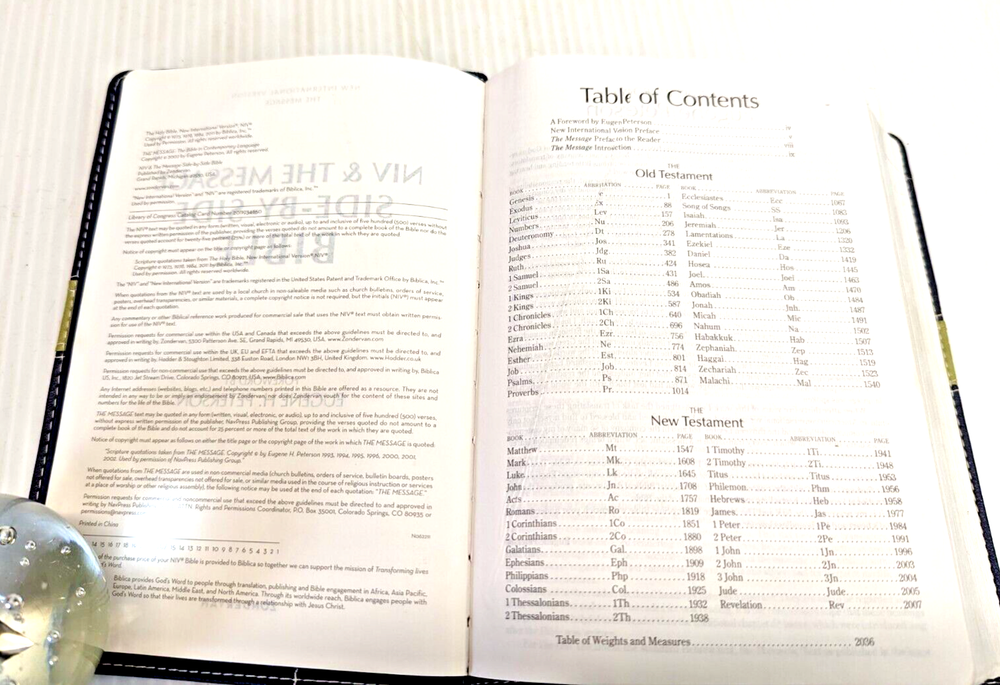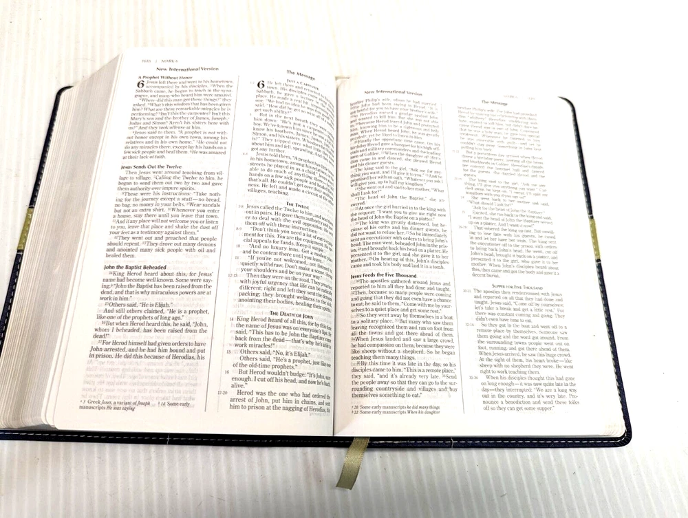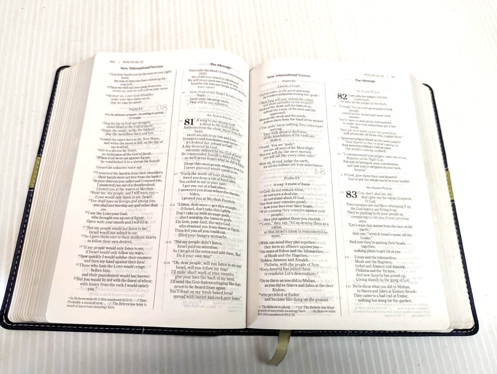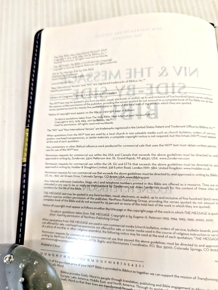 Holy Bible NIV & The Message Side-by-Side Bible 2011 Small Leather Zondervan TexasRelics appreciates your interest!! Please Save Seller, Follow and View our store with many other vintage collectibles. Many TexasRelics listings allow offers. All offers considered, with quick response… Combined shipping available on all multiple item orders. Please inspect photos carefully. Know what you are buying. Sold As Pictured and Described. See fotos. Item may show natural weathering, scratches, minor dents, spotting, flaking or fading, fraying edges, along with other signs of aging and wear. TEXAS RELICS offers excellent, trusted service! Take a trip through our store. New unusual items listed every week. We are happy to answer any questions you may have. Check our feedback, and should you like this item, make sure to add it to your watch list and click save this seller. Thanks for shopping with us! Returns are accepted for 30 days. NO Refunds for any pictured or declared defects. Payment is requested at time of purchase. eBay manages and accepts most forms of payment. Applicable State Sales tax is automatically added by eBay. Please Contact us through eBay email if you have any questions regarding the item you purchased. We will work hard to resolve any issue. Texas Relics is careful to follow all eBay guidelines.