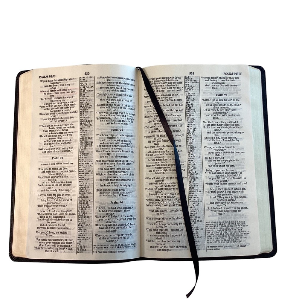 Holy Bible NIV Ultra Thin Reference Bible Black Bonded Leather Cornerstone Some highlighted areas exterior is in excellent condition Ultra Thin Pre-owned - In Great Condition SUPER FAST SHIPPING