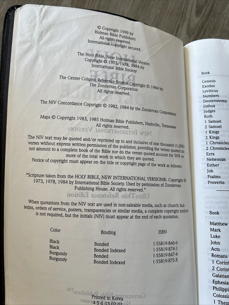This lot is for the 1 book Holy Bible NIV UltraThin Reference Edition Leather Cornerstone Black This book is used in good condition Please see picture. Thank you for Looking Check out my other items ! Be sure to add me to your favorites list !