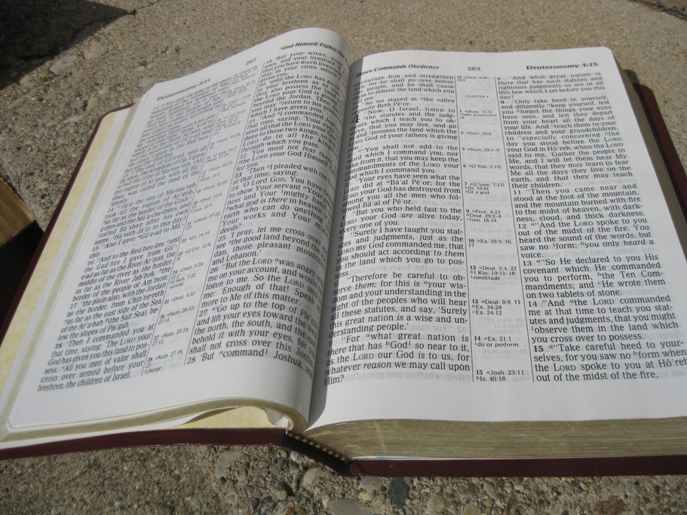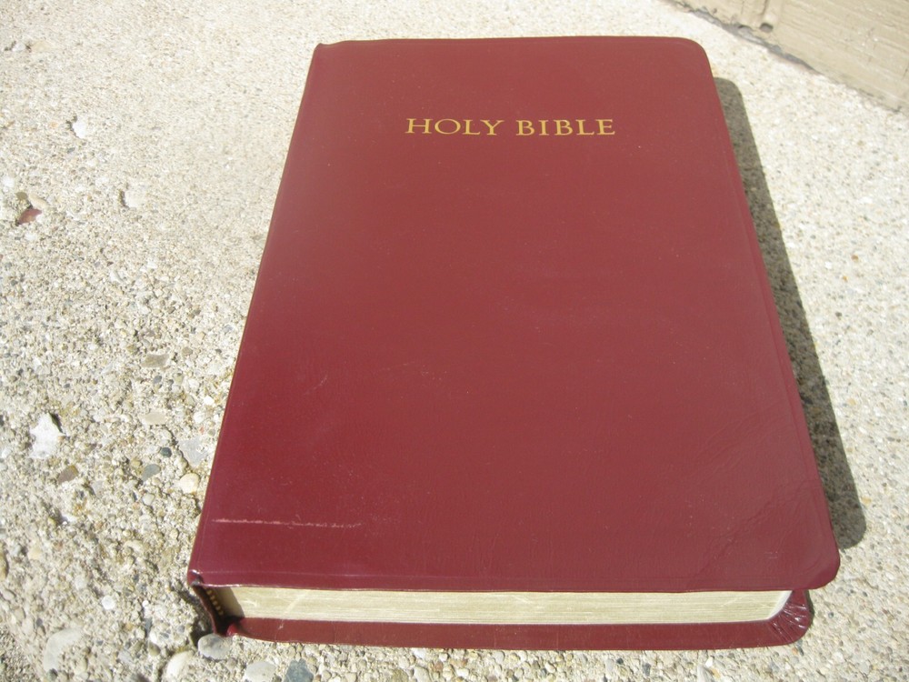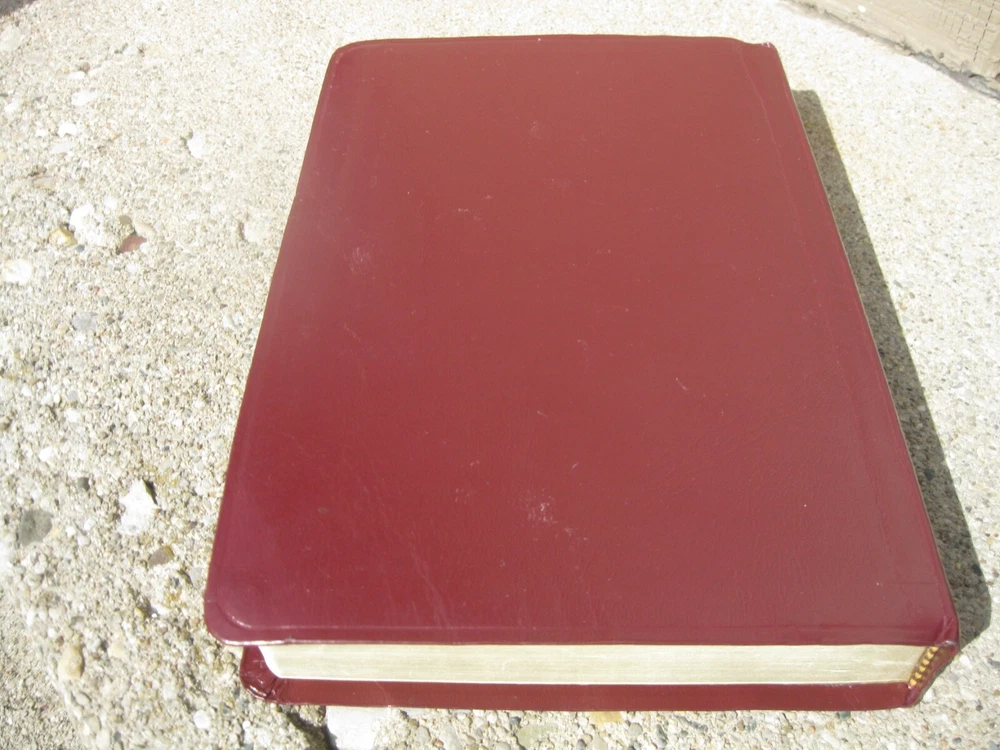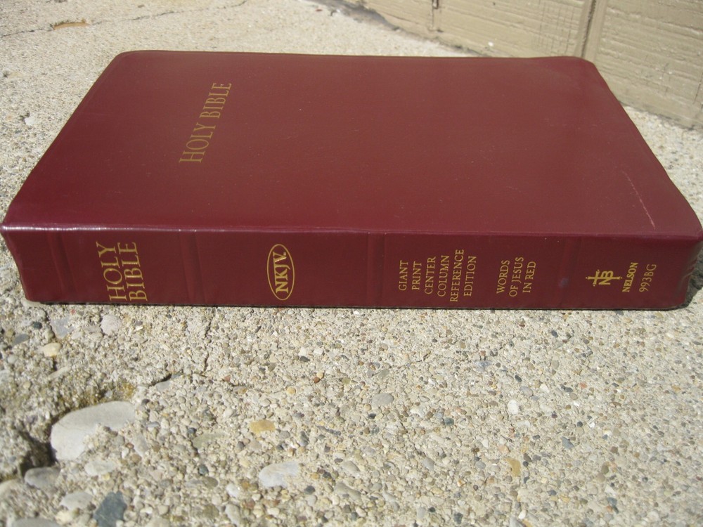 The Bible appears to be gently read and is in very good condition except for some crinkles on a few pages and some very light scuffs on the covers. Other than that, the pages and covers are crisp and sharp. The covers are simulated maroon leather. The book was published by Nelson in 1994.