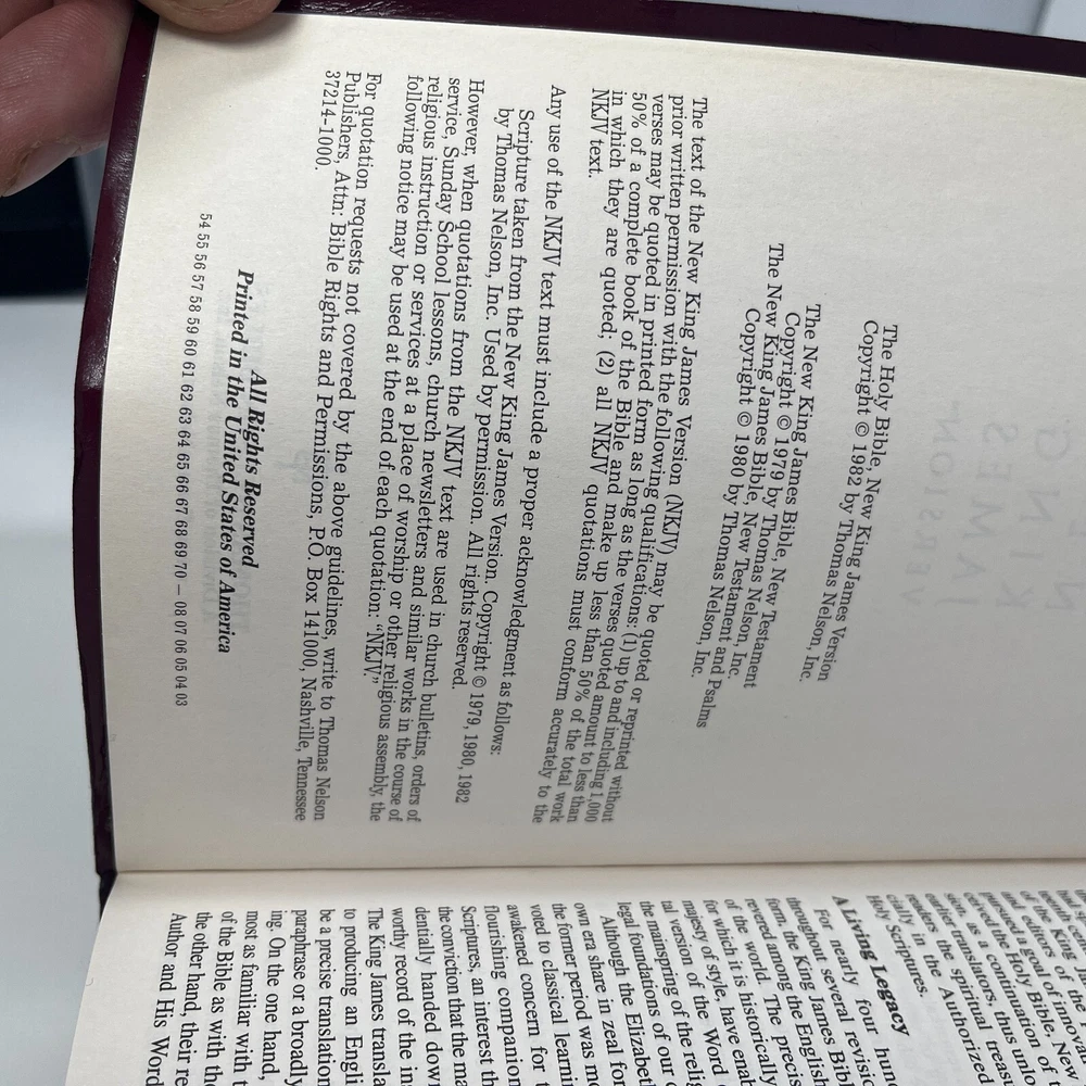 Dive into the timeless wisdom of the Holy Bible NKJV, presented in a 1979 Faux Leather edition by Thomas Nelson Publishing Staff. This revered text is crafted for those seeking a comprehensive understanding of the New King James Version, complete with a dictionary and the distinctive red letter features that highlight the words of Jesus. Published by Nelson Incorporated, Thomas, this Bible is a valuable addition to any collection, offering a deep exploration of spiritual truths. The English language edition ensures accessibility for a broad audience, inviting readers to immerse themselves in the rich tapestry of biblical narrative and reference.