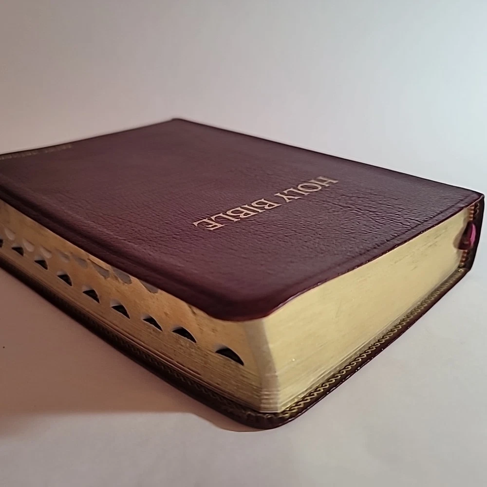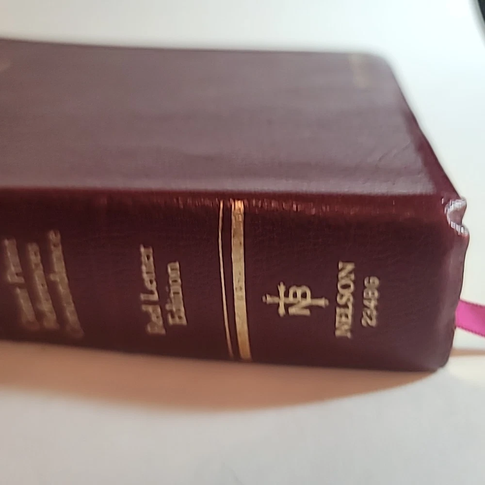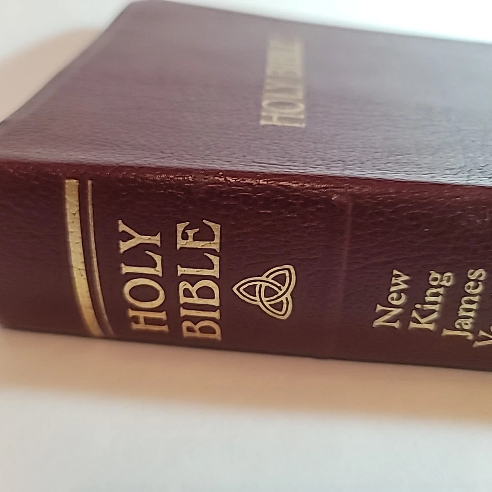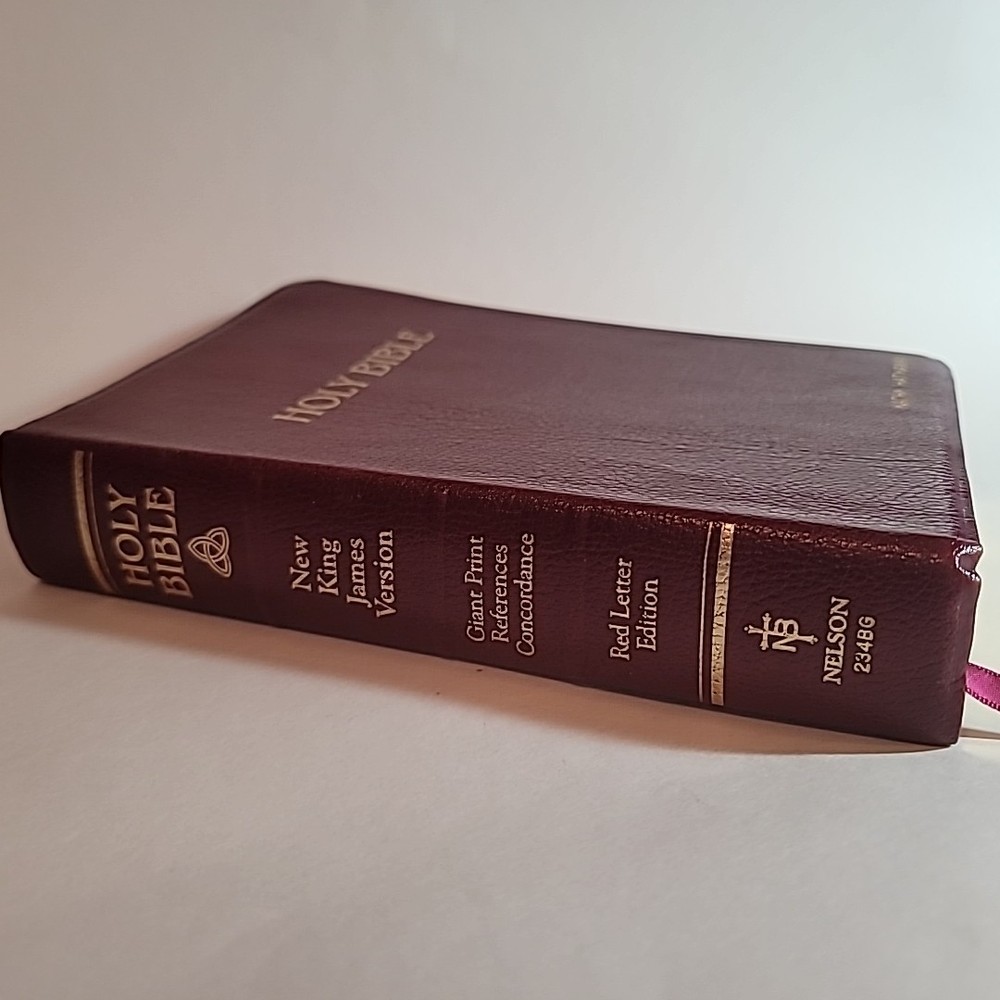 This NKJV Giant Print Bible is a beautiful burgundy leather edition with helpful references and a concordance. Despite a previous owner’s name and a minor scuff, the interior is pristine—perfect for study or worship. The large print makes reading effortless. A great find for anyone seeking a durable, lightly used Bible. Don’t miss out on other treasures from this seller!