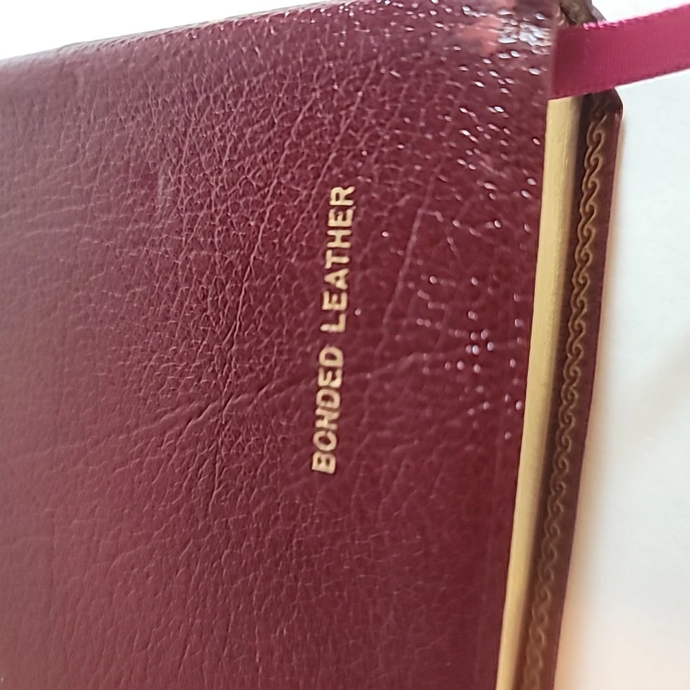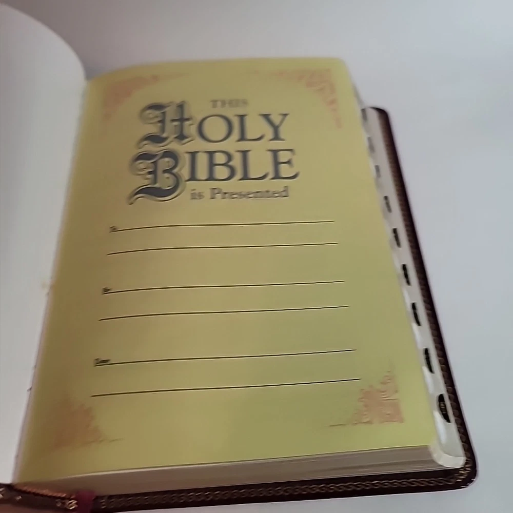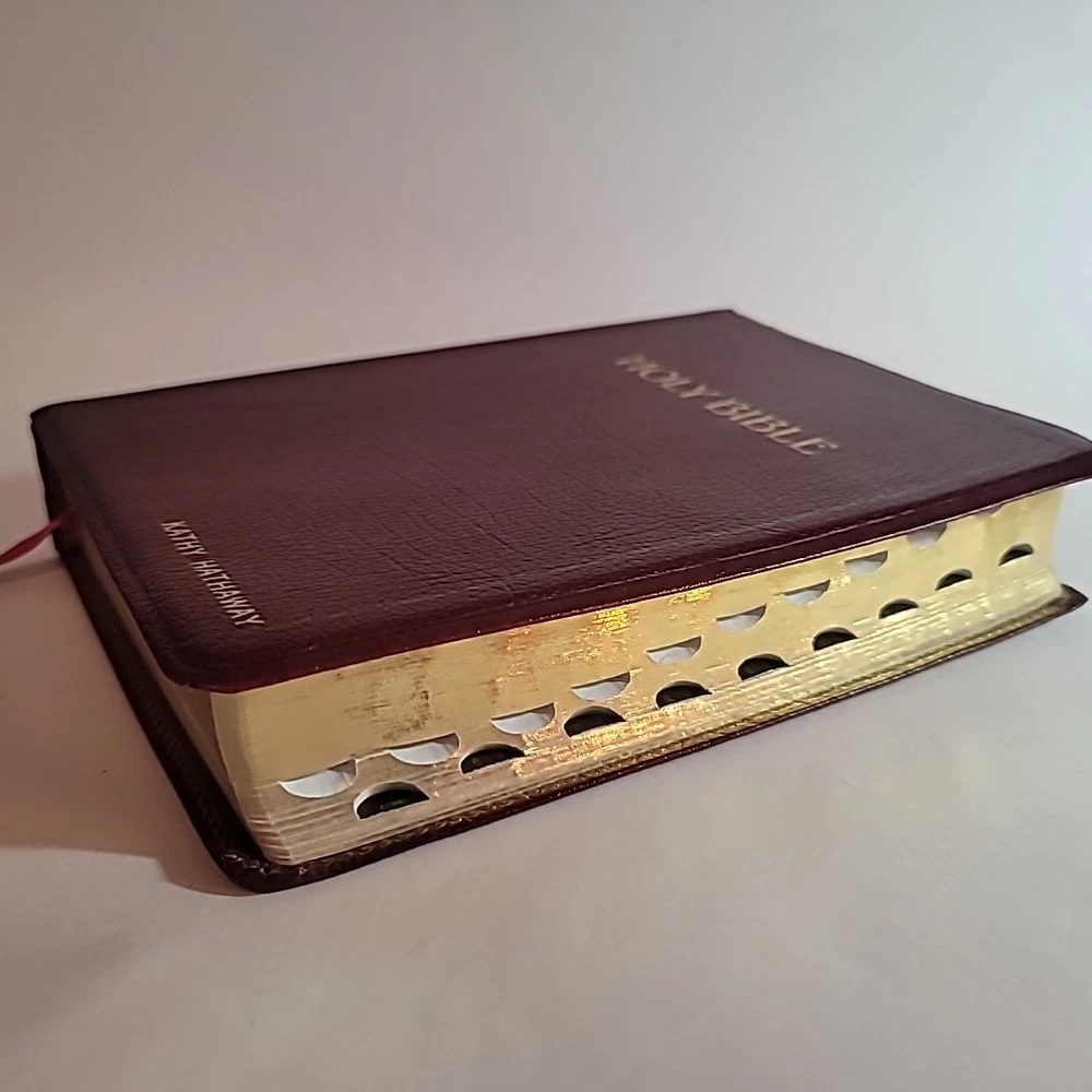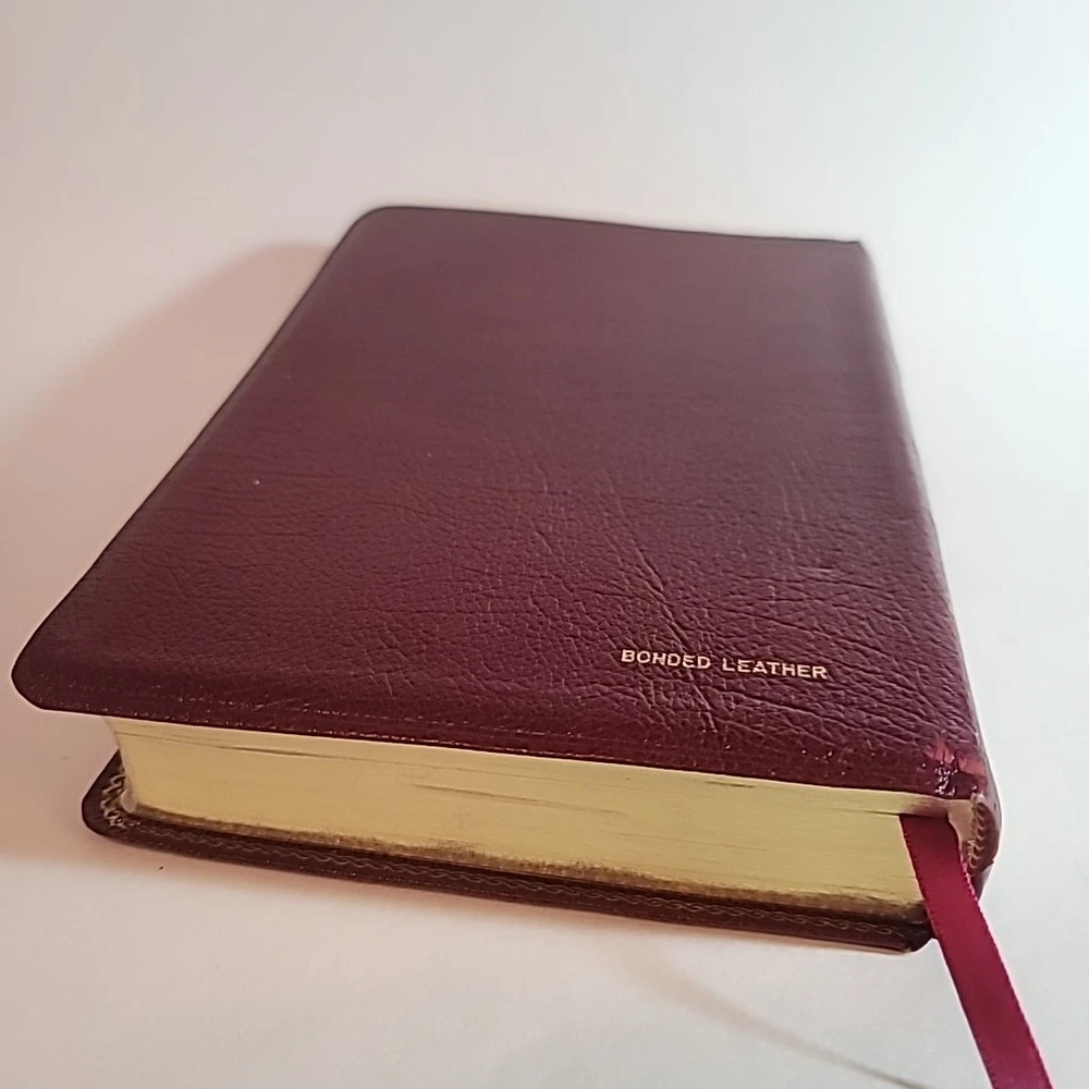 This NKJV Giant Print Bible is a beautiful burgundy leather edition with helpful references and a concordance. Despite a previous owner’s name and a minor scuff, the interior is pristine—perfect for study or worship. The large print makes reading effortless. A great find for anyone seeking a durable, lightly used Bible. Don’t miss out on other treasures from this seller!