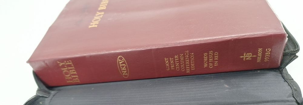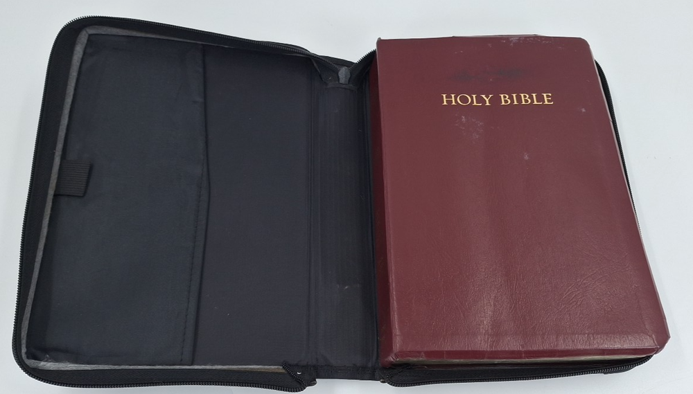 Bible has some damage from age and use review all photos. Comes with nice heavy duty case!