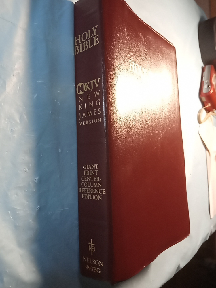 The Holy Bible NKJV Giant Print Center Column Reference Edition Leather Nelson 1994 is a beautifully crafted Bible published by Thomas Nelson in 1994. This edition features a large print format with a center column for references, making it a valuable resource for readers seeking to deepen their understanding of the Bible. The leather binding adds a touch of elegance to this religious and spiritual book, making it a cherished possession for those who appreciate a well-crafted Bible for personal or devotional use.