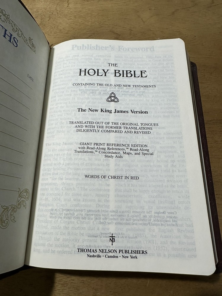 This is a 1994 edition of the Holy Bible in the New King James Version (NKJV) published by Thomas Nelson. It is a center column reference edition with giant print and is bound in leather. The book is written in English and is suitable for those interested in religious and spiritual reading. The book title is simply "The Bible" and the author is also Thomas Nelson. The publisher is Nelson Incorporated, Thomas. The book is categorized under "Books & Magazines" and "Books" and is marked as "Like New" under the "Condition" column.