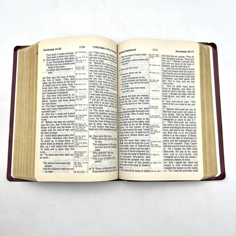 Selling a Holy Bible NKJV Giant Print Center Column Reference Edition Nelson 991BG Red in good pre-owned condition. Please see photos to see details of the condition. Lighting in photos may make color of product appear slight different (lighter or darker) than actual color. If you have any questions, feel free to send us a message!