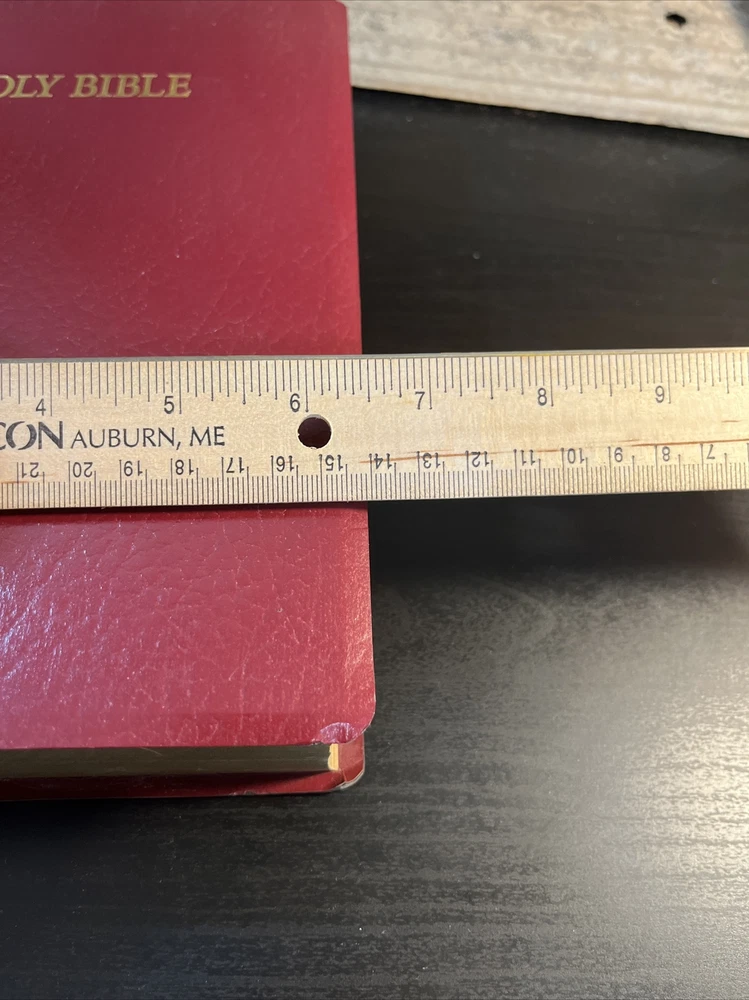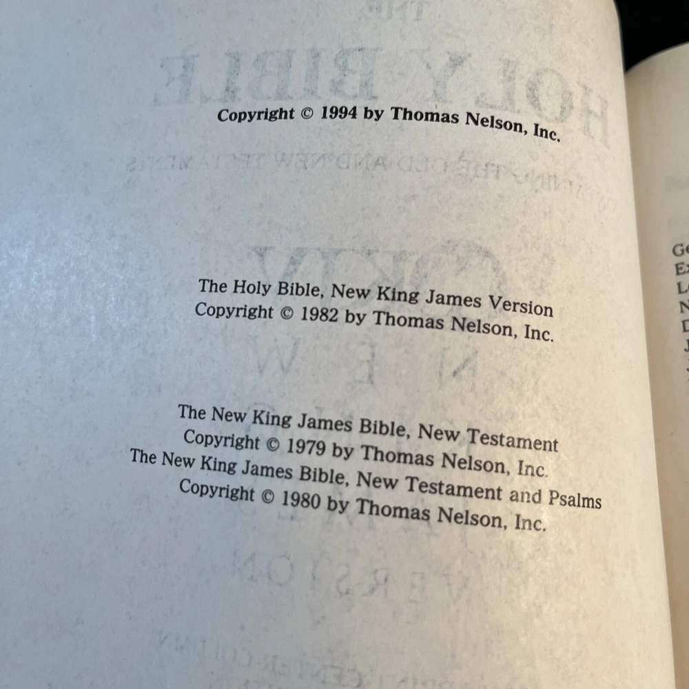This beautiful faux leather bound collector's edition of the NKJV Bible is a must-have for anyone seeking a quality religious and spiritual resource. Measuring 9.5 inches in length, 6.5 inches in width and 2 inches in height, it is a vintage item published in 1994 by Thomas Nelson. This reference edition features giant print and red letter words, making it easy to read and follow along with the text. The narrative type is nonfiction and the topic is religion and beliefs, specifically centered around the Bible. The unit quantity is one and the item weight is 25 oz. It is an English language publication with original language also being English. The book series is the New King James Version and it is signed and personalized. The features include an ex libris, inscribed, and personalized options. The literary movement is Enlightenment and it is an era-specific book, belonging to the 1990s. The author is the Bible, with subjects including religion and beliefs. The country/region of manufacture is the United States.