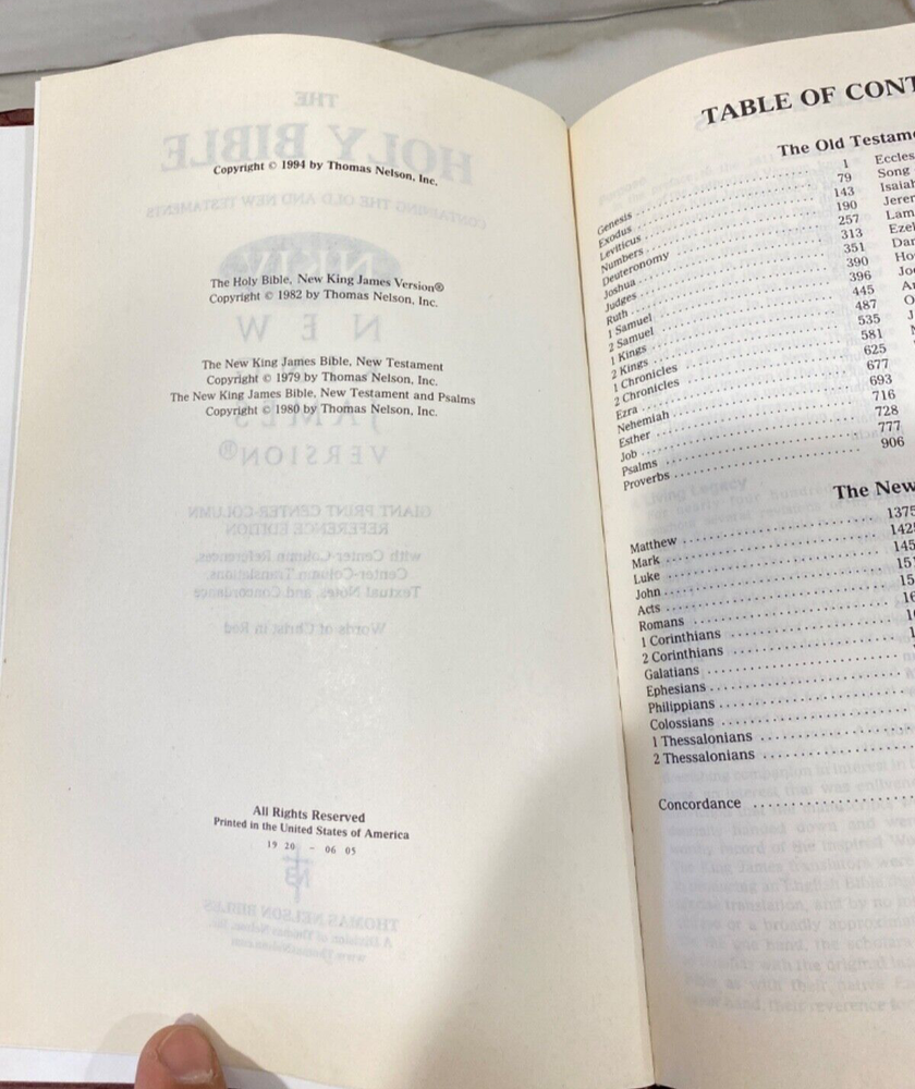 Holy Bible NKJV Giant print Center column Reference edition 1994...