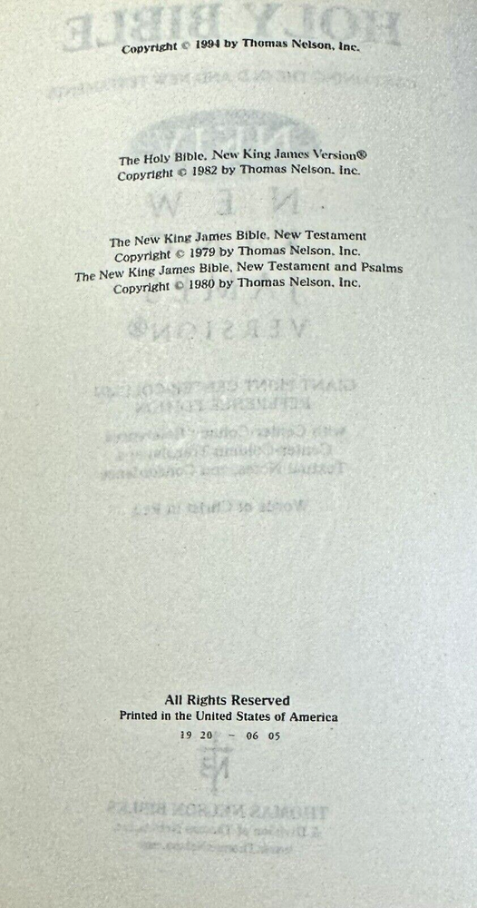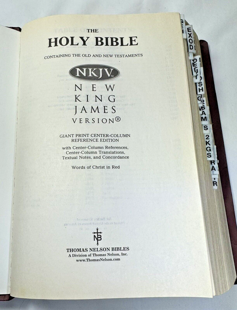 Holy Bible NKJV Leather Giant Print Center Column Reference Ed. Indexing Tabs Very Good condition. See all photos for best description...