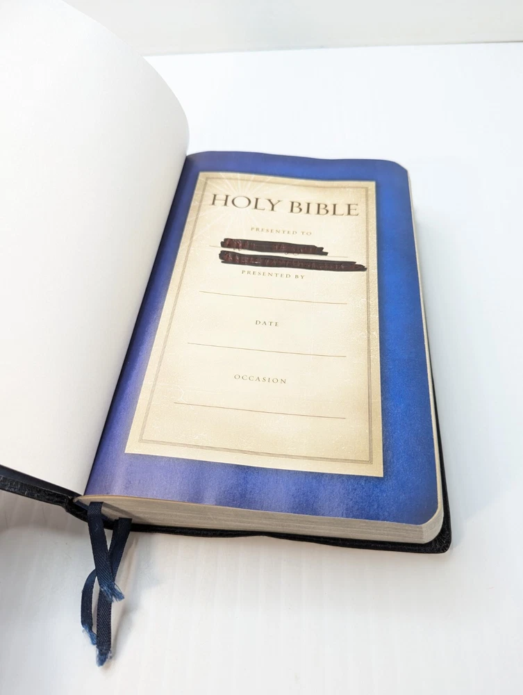 This Bible is in very good condition, but it does have writing on the "Presented To" area on the first page, please see photos....