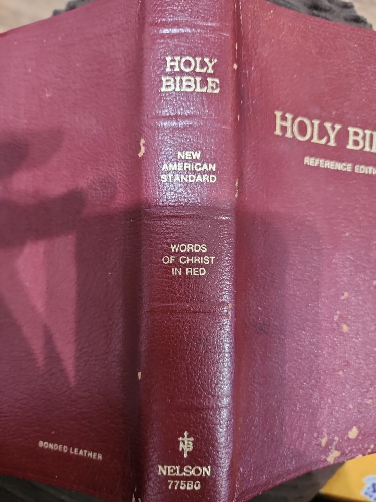 Holy Bible: Nelson New American Standard Reference Edition 775 BG 775BG Leather. Used good condition and does show signs of wear such as some creases and blemishes on the cover The word of Christ in red. **First page that says presented to has been filled out with originals owners name and info. **