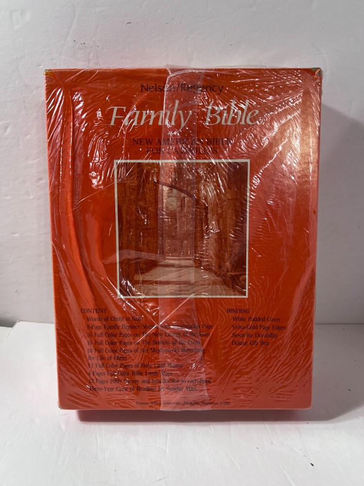 Holy Bible Large America Catholic Vintage Nelson/Regency Family New Sealed NOS new sealed. old stock. never opened. family bible great gift. this is the american catholic edition ... heavy at almost 7...