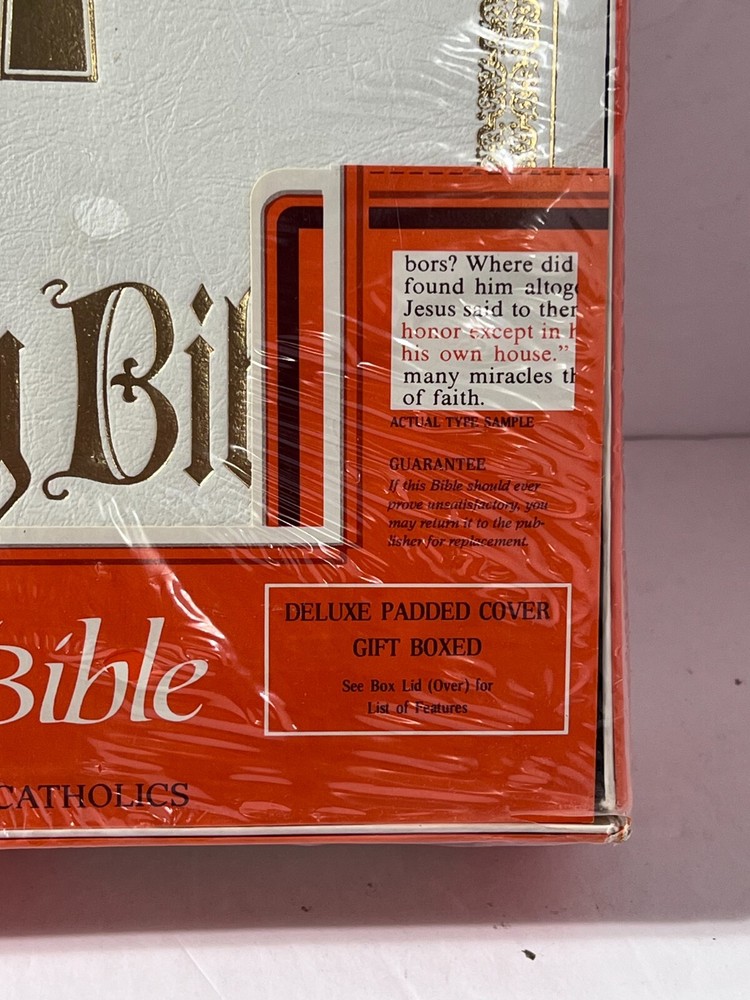 Holy Bible Large America Catholic Vintage Nelson/Regency Family New Sealed NOS new sealed. old stock. never opened. family bible great gift. this is the american catholic edition ... heavy at almost 7 pounds. fast ship thank you