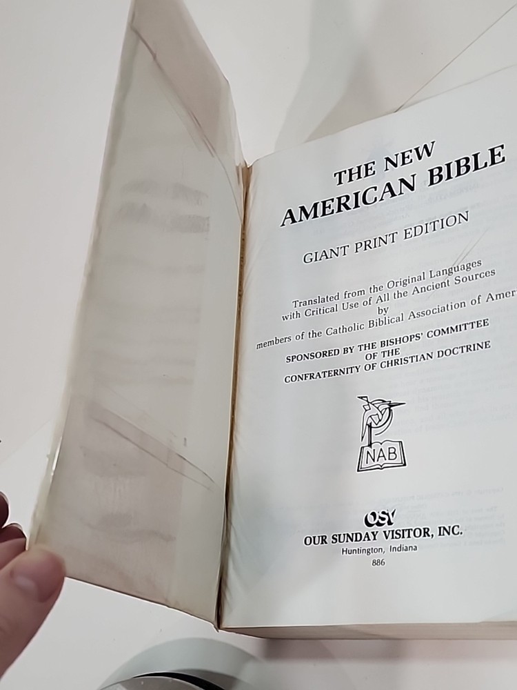 This beautiful black leather-bound Holy Bible is a must-have for any individual seeking spiritual enlightenment. With giant print and faux leather binding, this 1976 Catholic edition is perfect for adults looking for a timeless piece of literature. The book includes historical nonfiction narratives and references to biblical events, making it a valuable addition to any collection. The Holy Bible is written in English and intended for an adult audience. The book's features include a black faux leather binding and a historical genre. It is a perfect item for anyone interested in religious and spiritual topics, as well as those seeking a reference Bible. This book is a true treasure and an excellent addition to any collection. This vintage Bible is in good condition. Some discoloration on the exterior of the pages. Inside pages are in great condition. No wrinkles or folded pages. The outside has been covered in plastic to protect the outside cover. Ships USPS