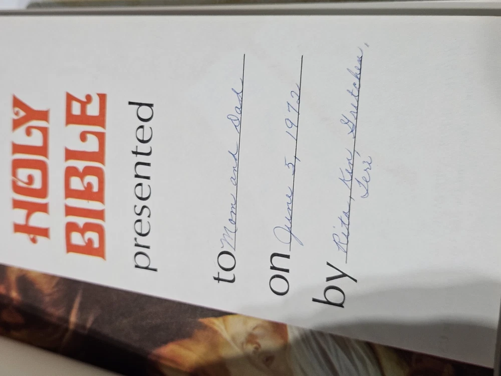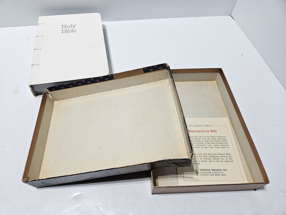 Very good condition. Spine is a little dirty. Back inside cover little dirty. Inscription on name place. Other than that do not think the Bible has been opened much at all