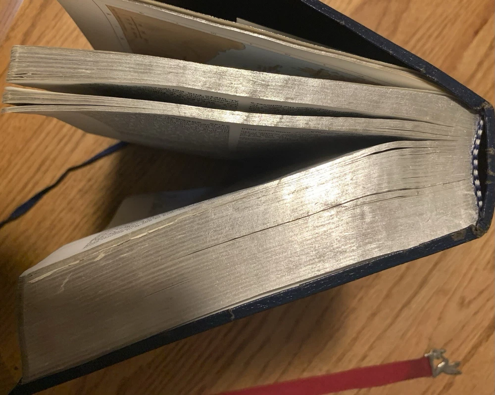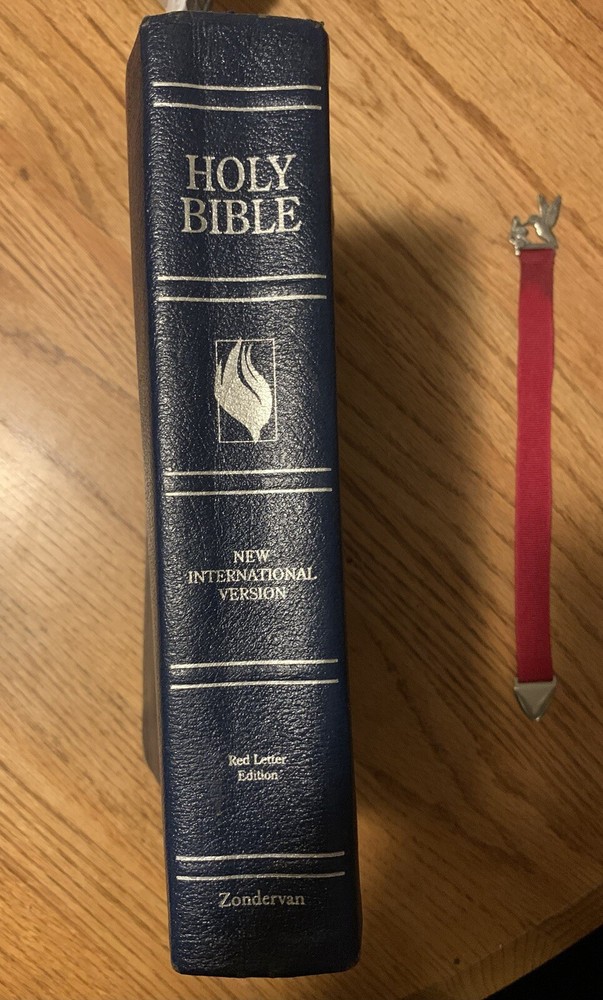 🔷 The Holy Bible 🔷Copyright 1992 🔷Leather Bound - Dark blue - Soft cover 🔷 Good Condition - Some page yellowing 🔷Bonus ribbon bookmark with metal Hummigbird...
